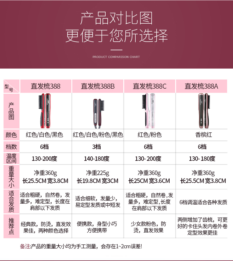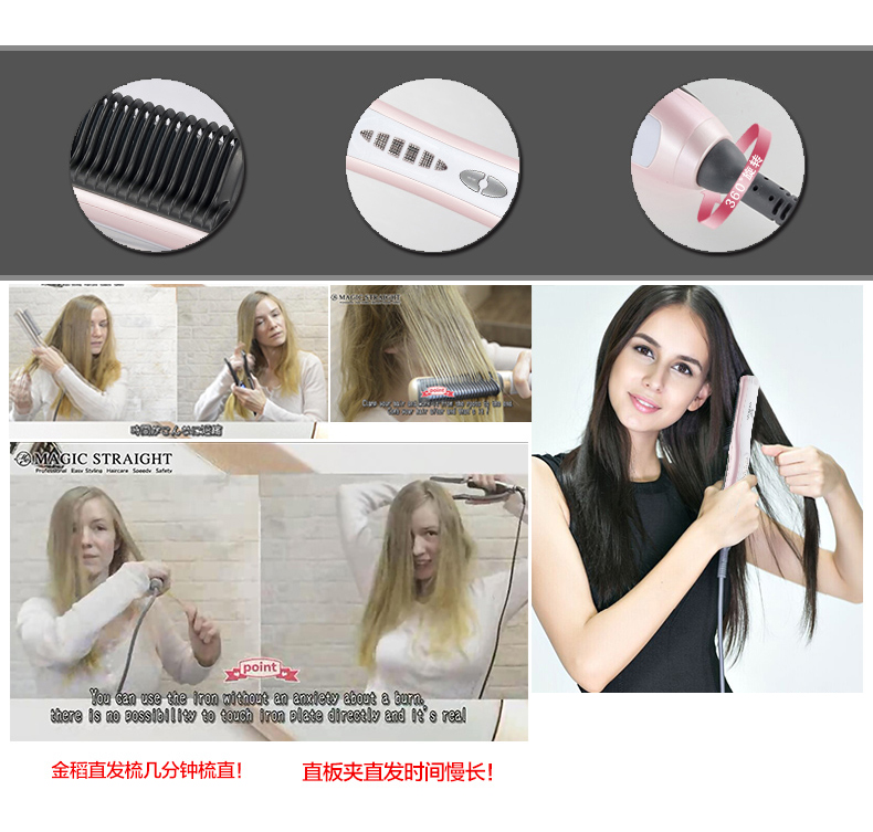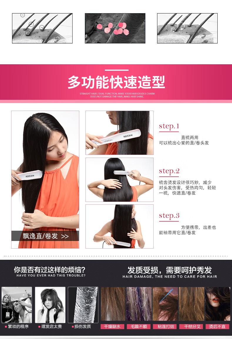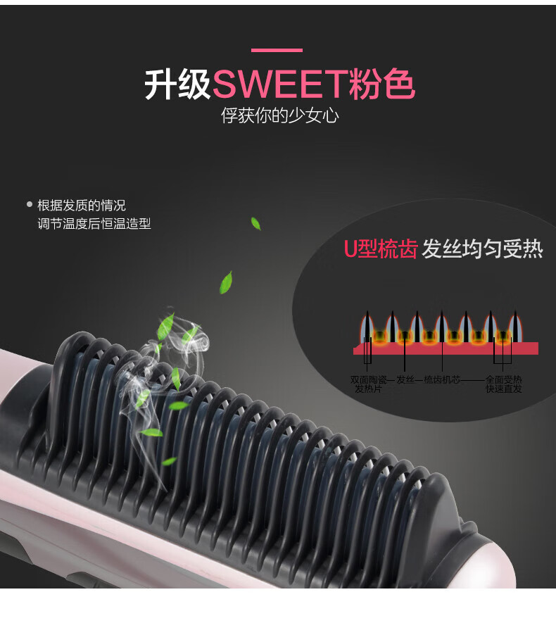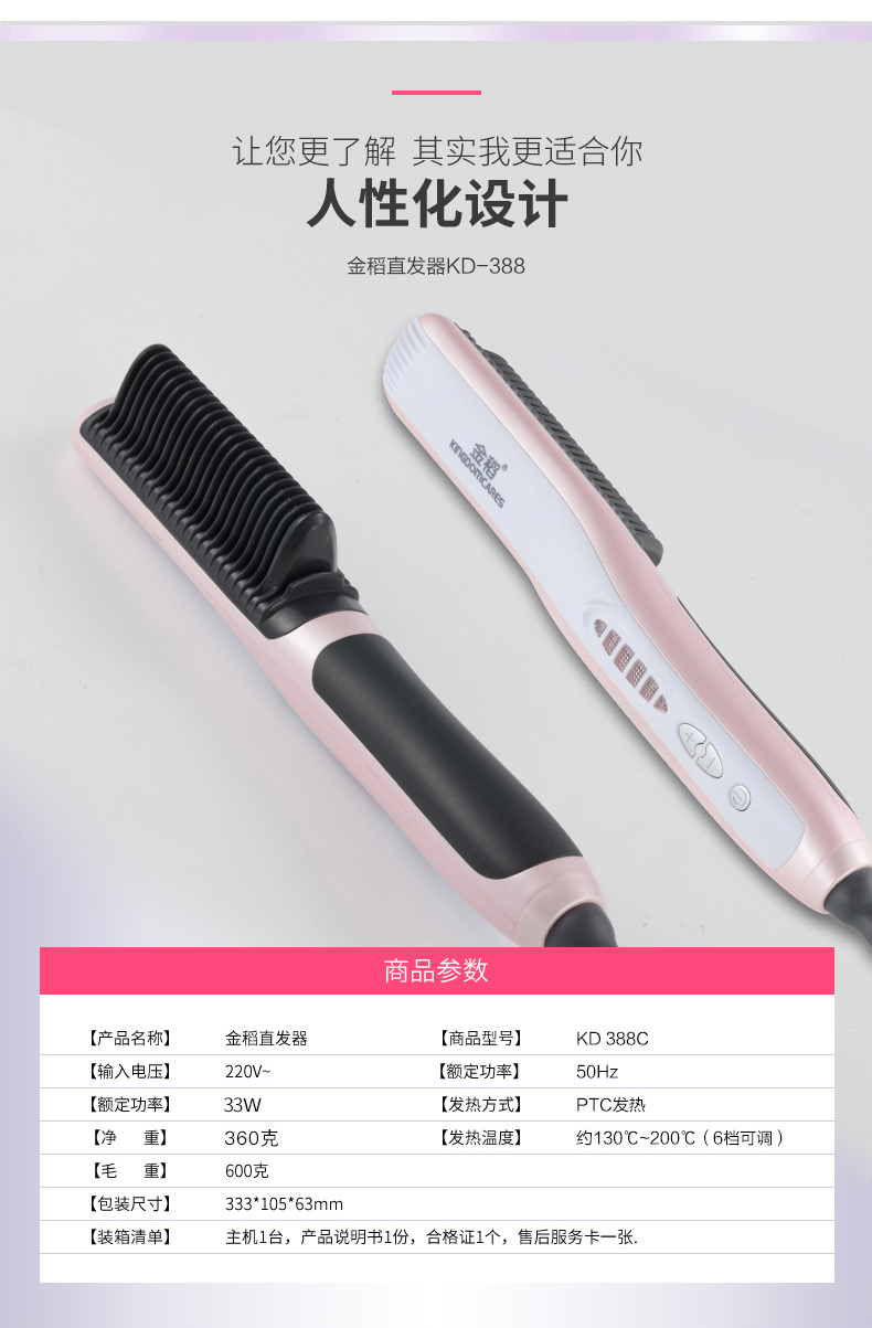 金稻 直发梳卷发棒迷你直发器卷发两用梳护发内扣卷发器直发夹板 生日礼物 KD388