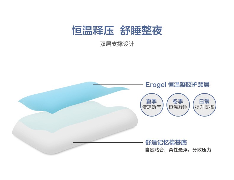 阿基里斯(Achilles)凝胶枕头 加大护颈记忆枕 舒缓颈椎专用高低枕芯 水晶枕 蓝色