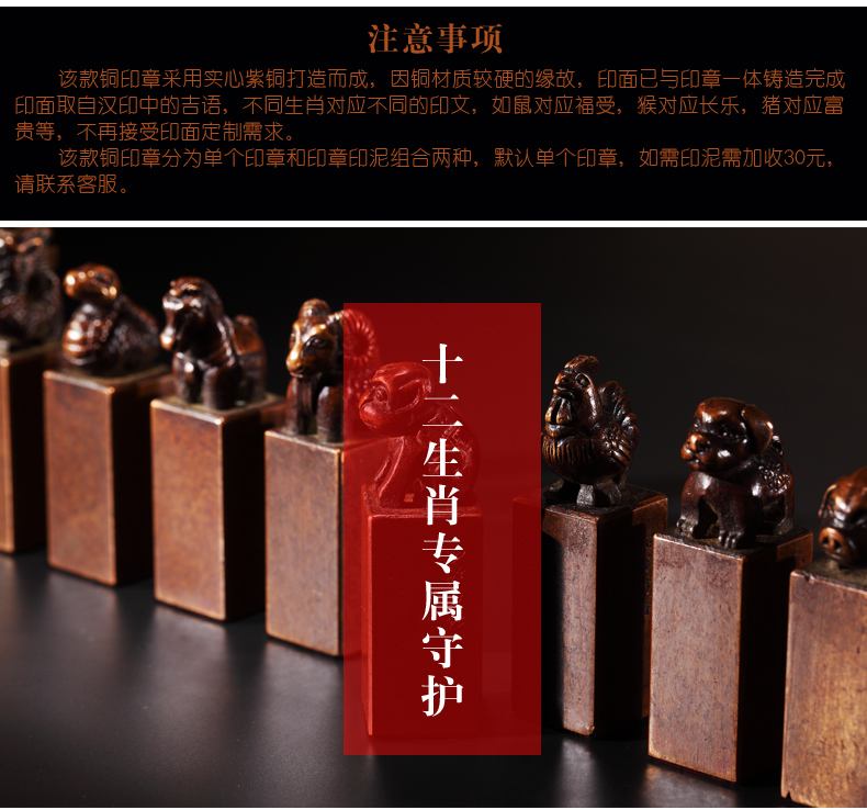 西泠印社12生肖紫铜印章 实心的紫铜铸造 印面内容为十二句吉语 皆从汉代印文中选出 传递出最恒远的守护与祝福