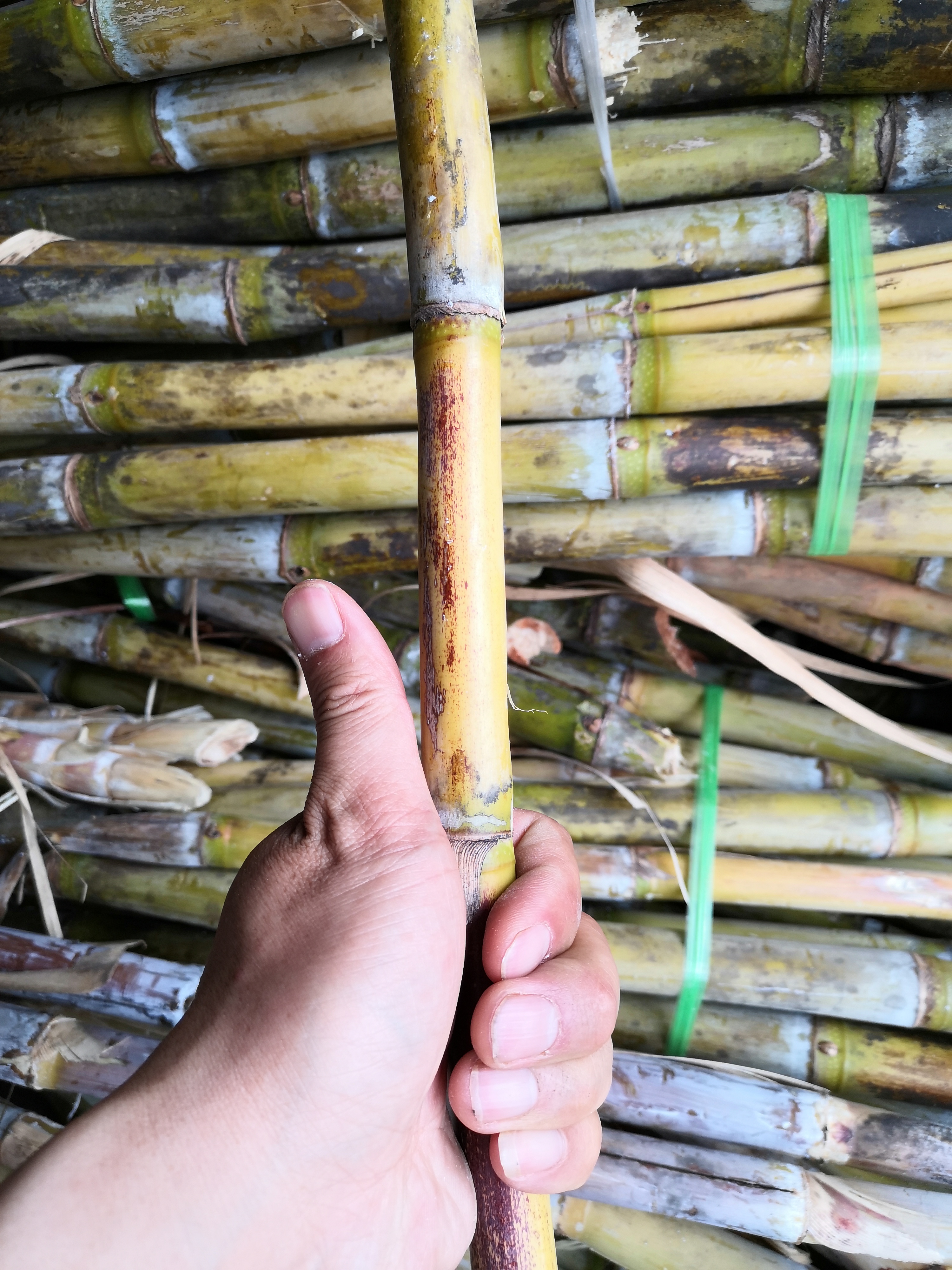 这样甘蔗榨出来的糖汁就比较清澈干净,