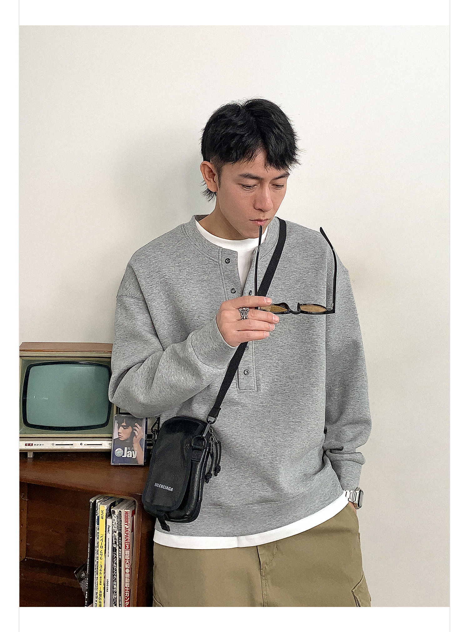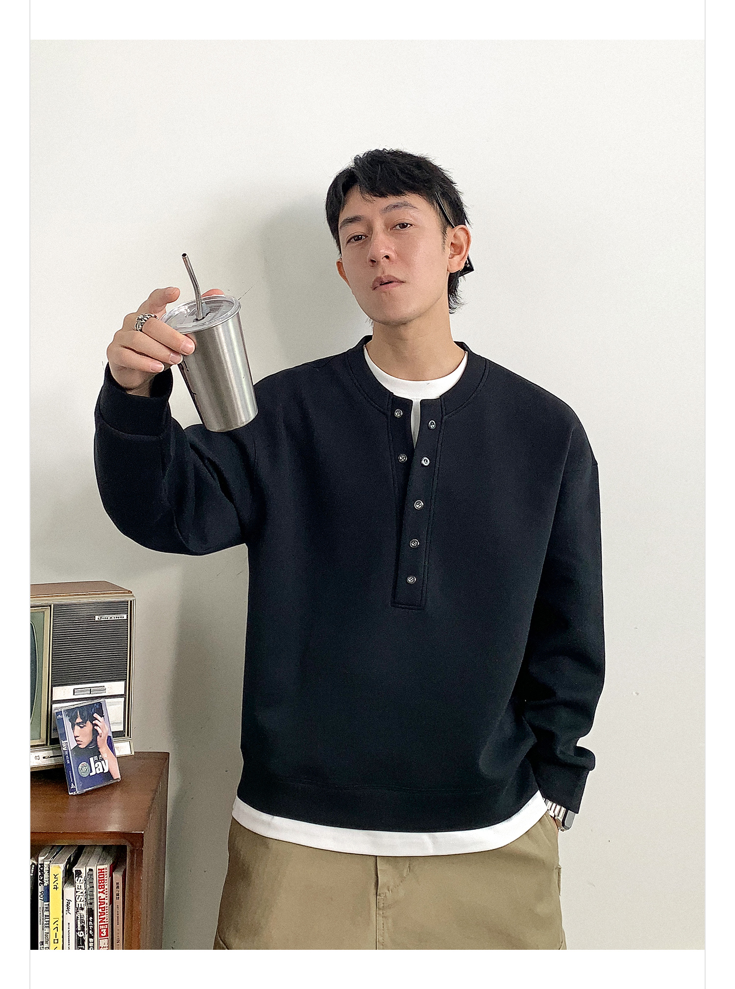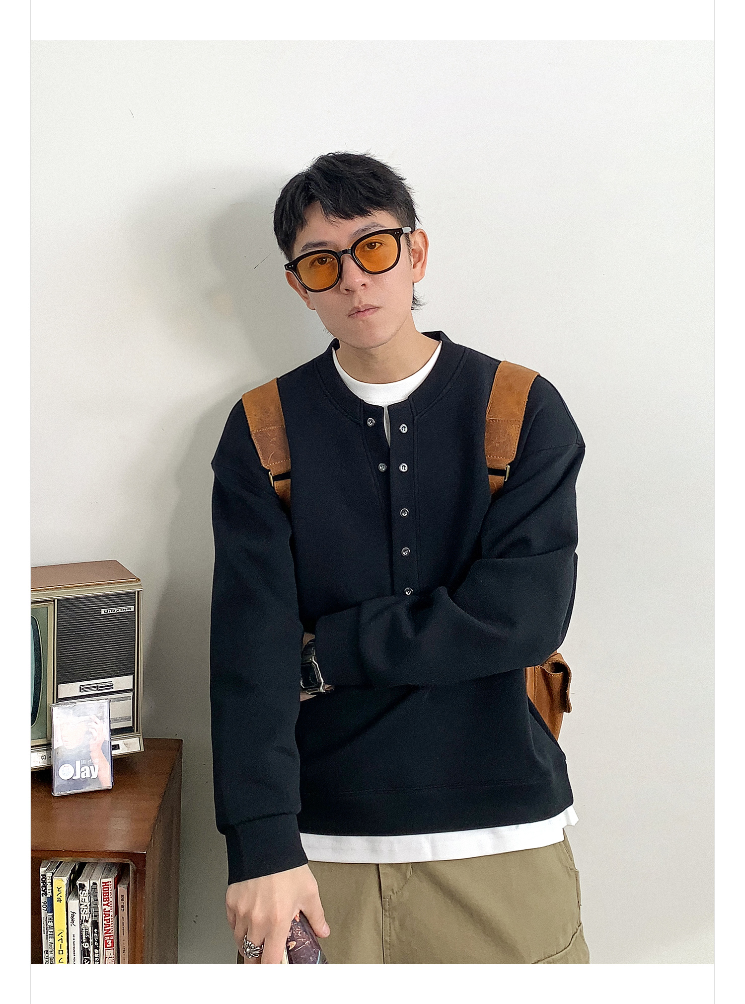 徐太浪美式休闲亨利领卫衣男春秋2025新款宽松大码内搭打底衫上衣