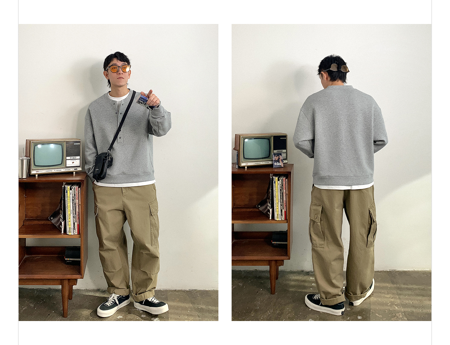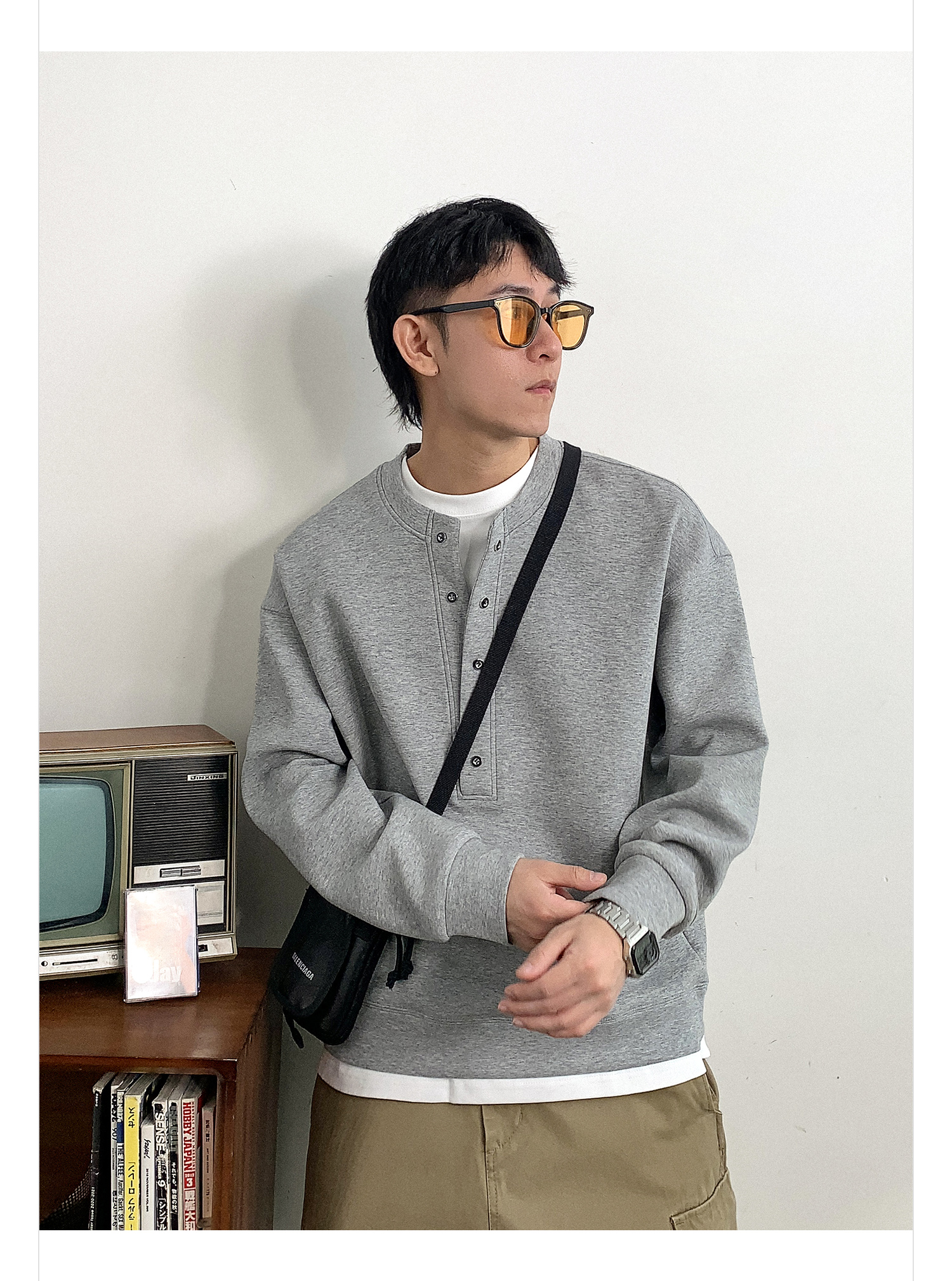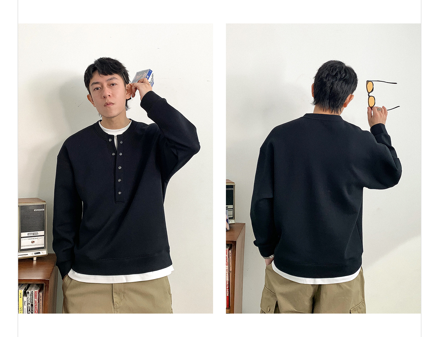 徐太浪美式休闲亨利领卫衣男春秋2025新款宽松大码内搭打底衫上衣