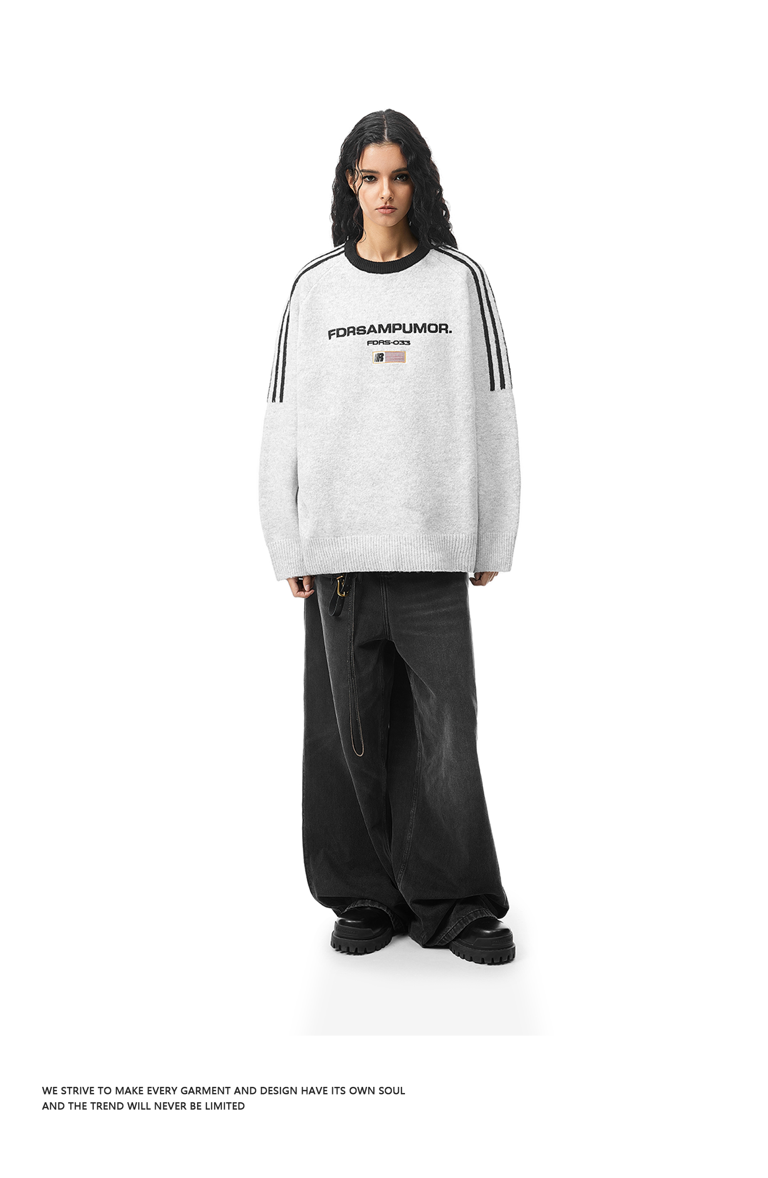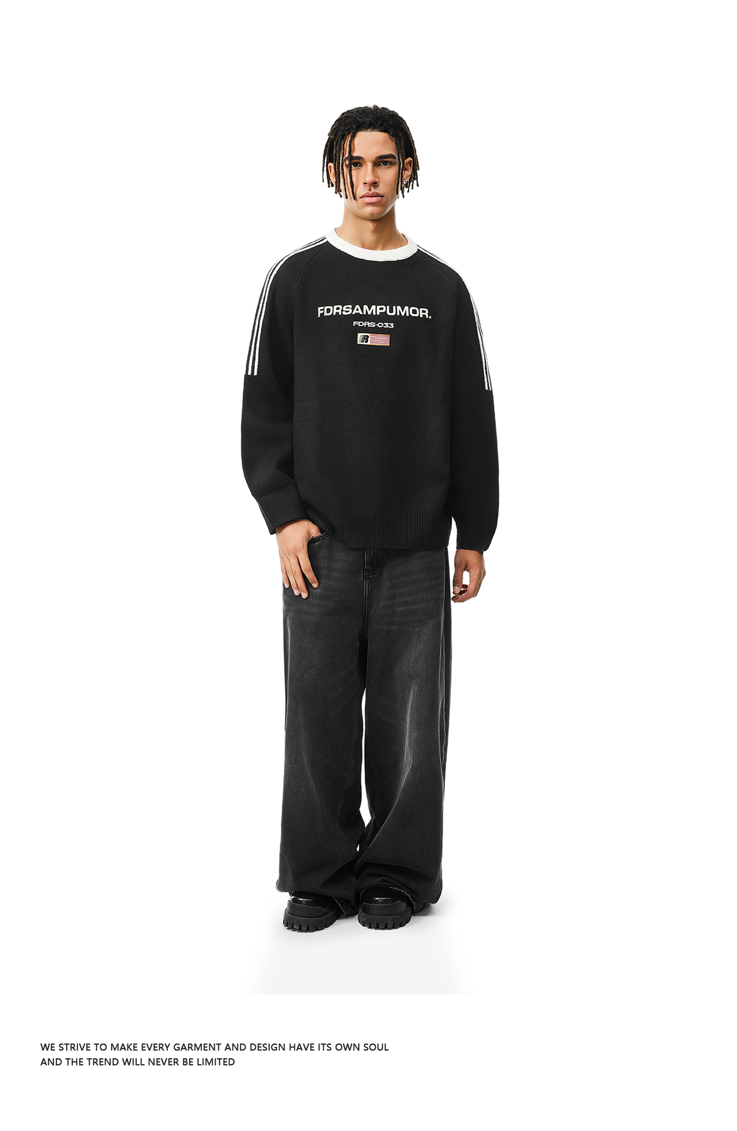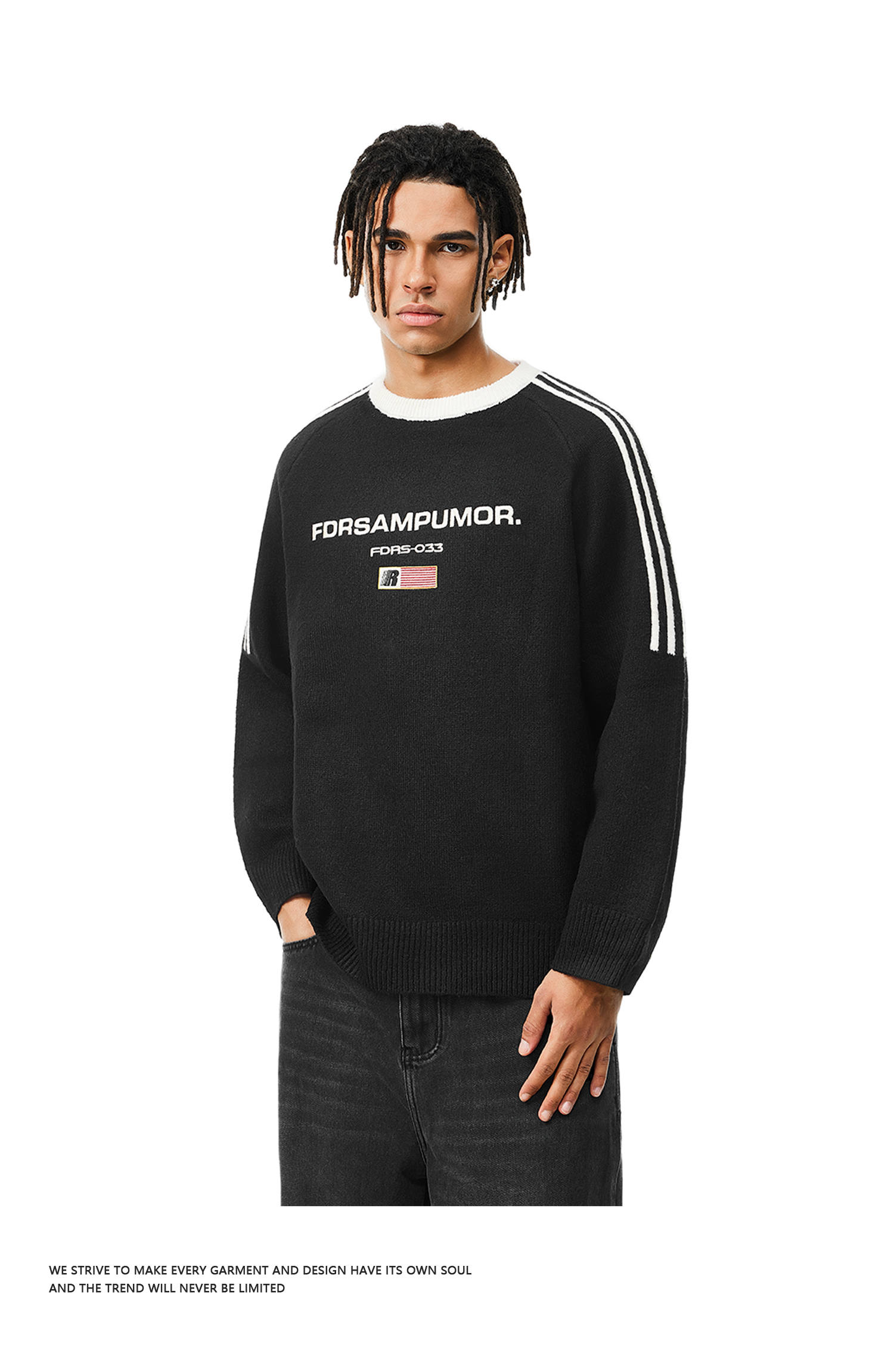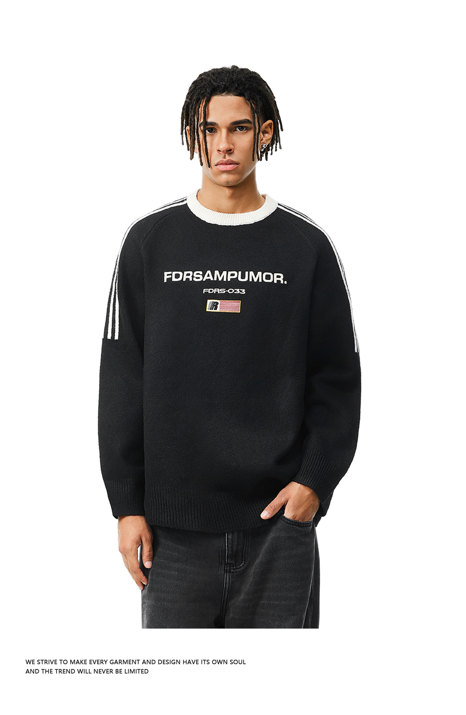 FDR官方店 圆领撞色旗帜毛衣男女春秋季美式运动宽松情侣装上衣
