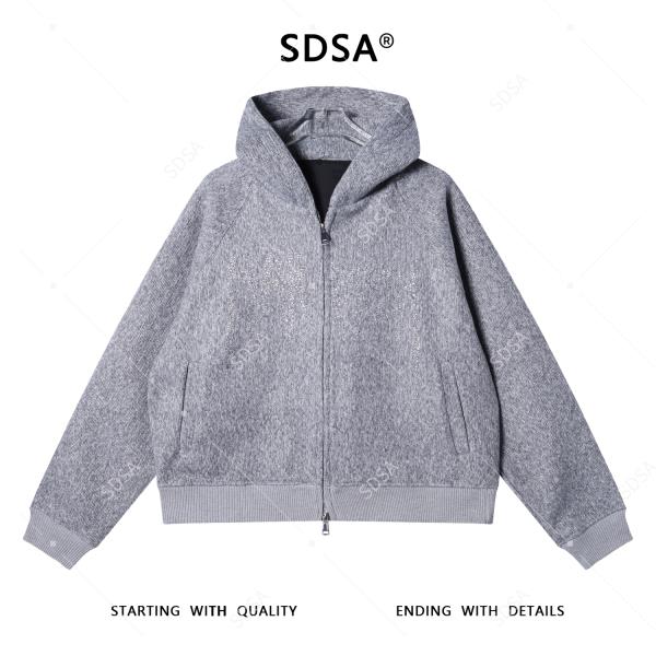 25204SDSA男士秋冬新款痞帅男装时尚简约烫钻拉链连帽针织卫衣外套百搭