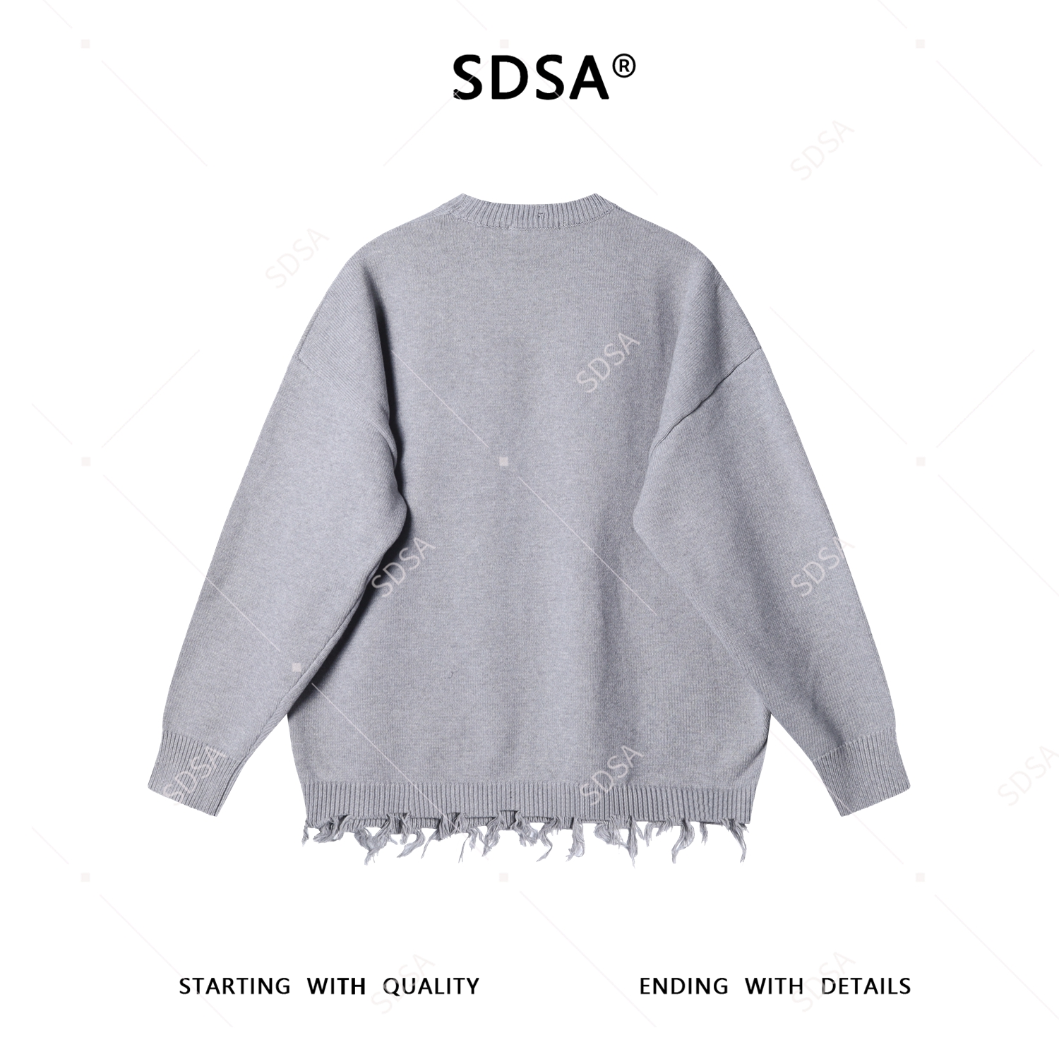 SDSA秋冬新款痞帅男装美式撞色字母圆领毛衣下摆流苏设计百搭时尚
