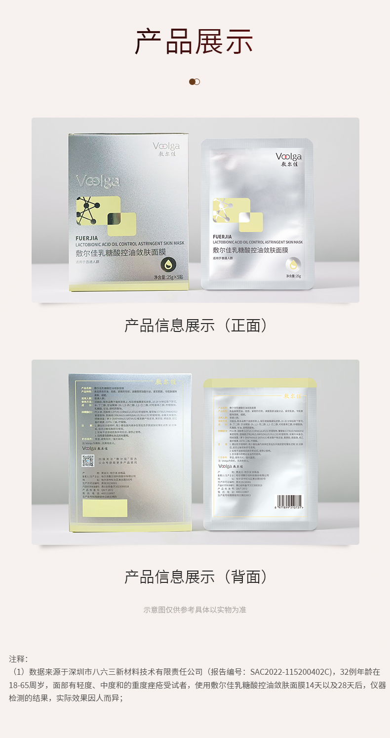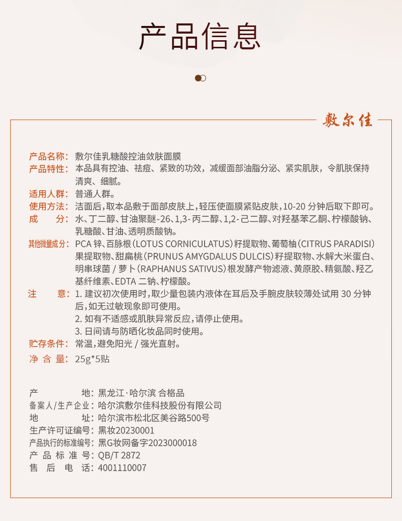 敷尔佳乳糖酸控油敛肤面膜 25g*5片/盒