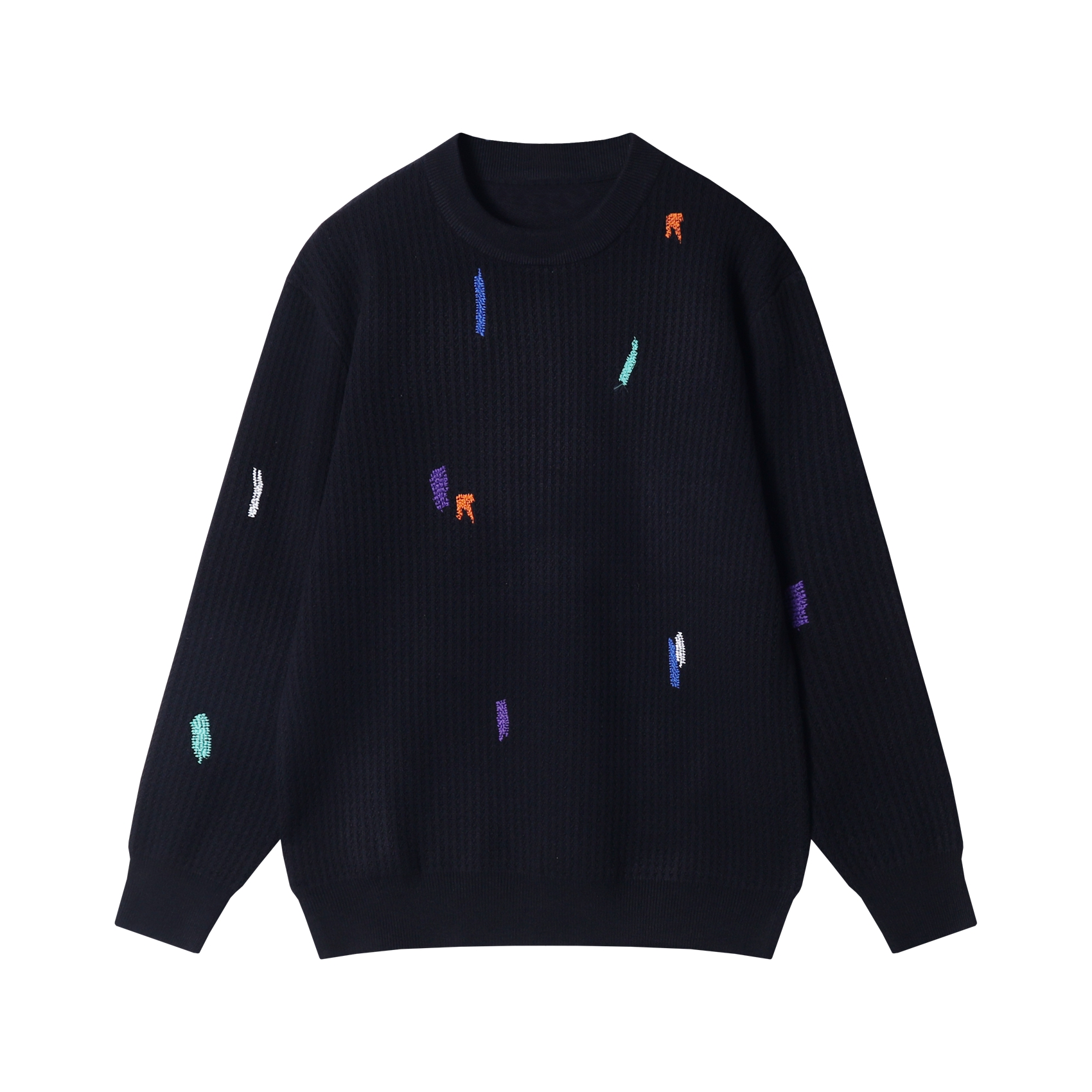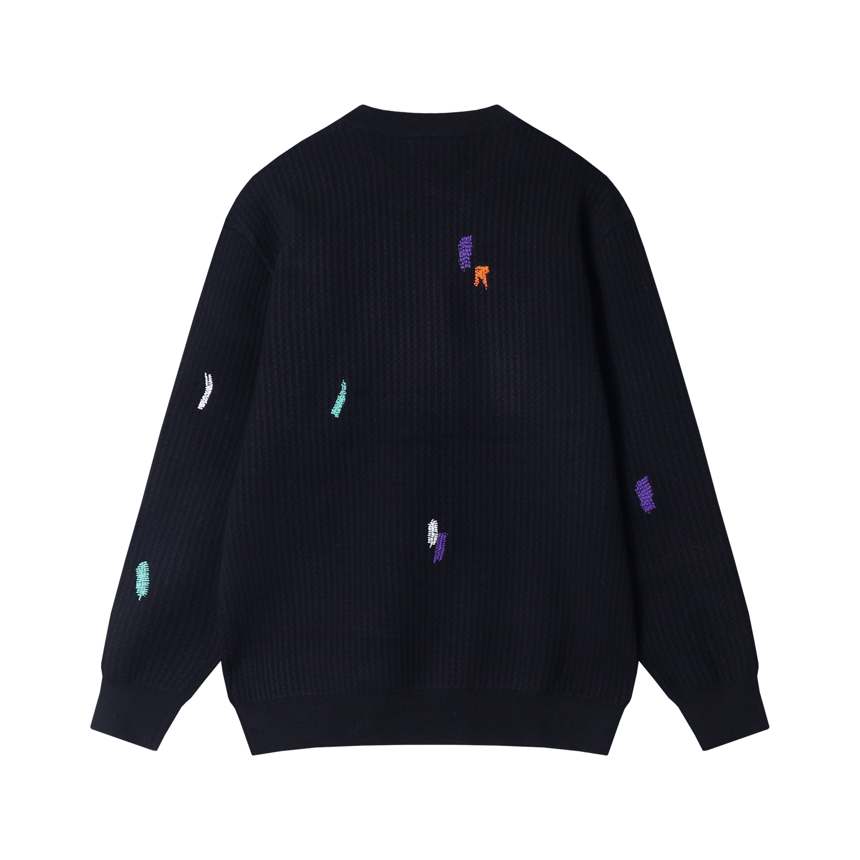 MY206秋冬新款男士彩色刺绣涂鸦风日系风格纯色潮奢宽松长袖针织衫