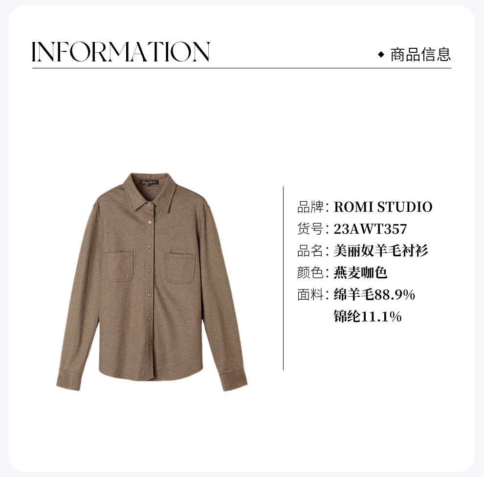 ROMI STUDIO“秋冬美拉德”90%澳洲美丽奴羊毛 燕麦咖衬衣23AWT357