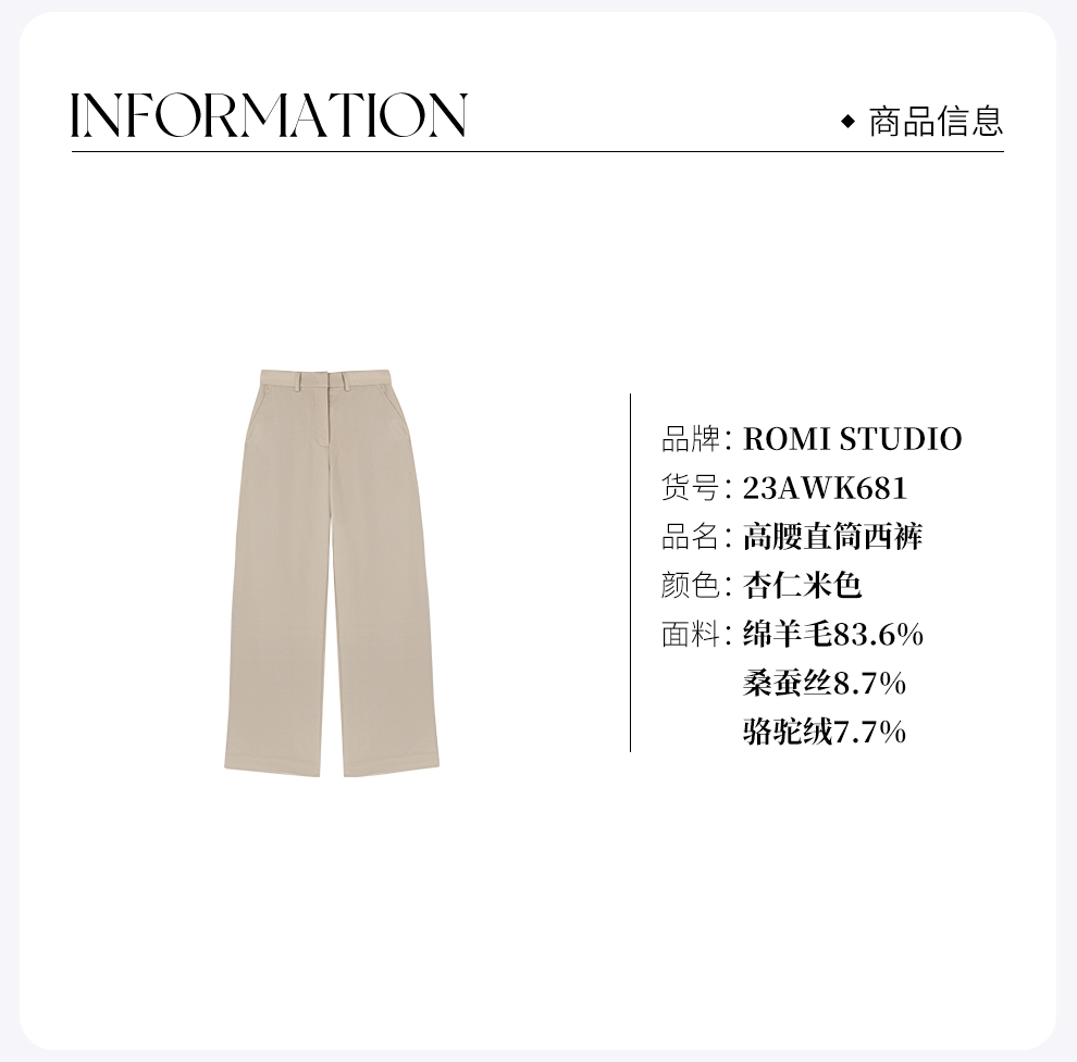 ROMI STUDIO“贵妇系列”驼绒混纺高腰直筒西裤23AWK681