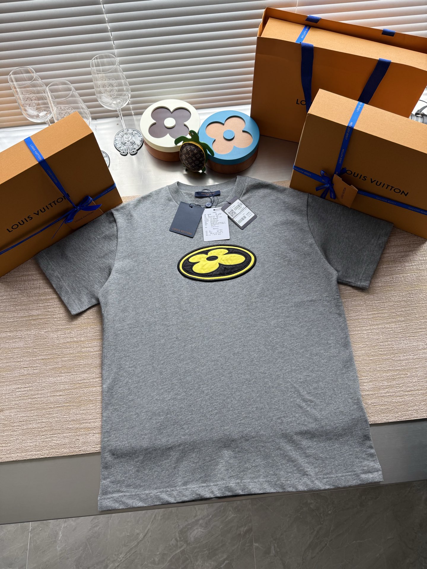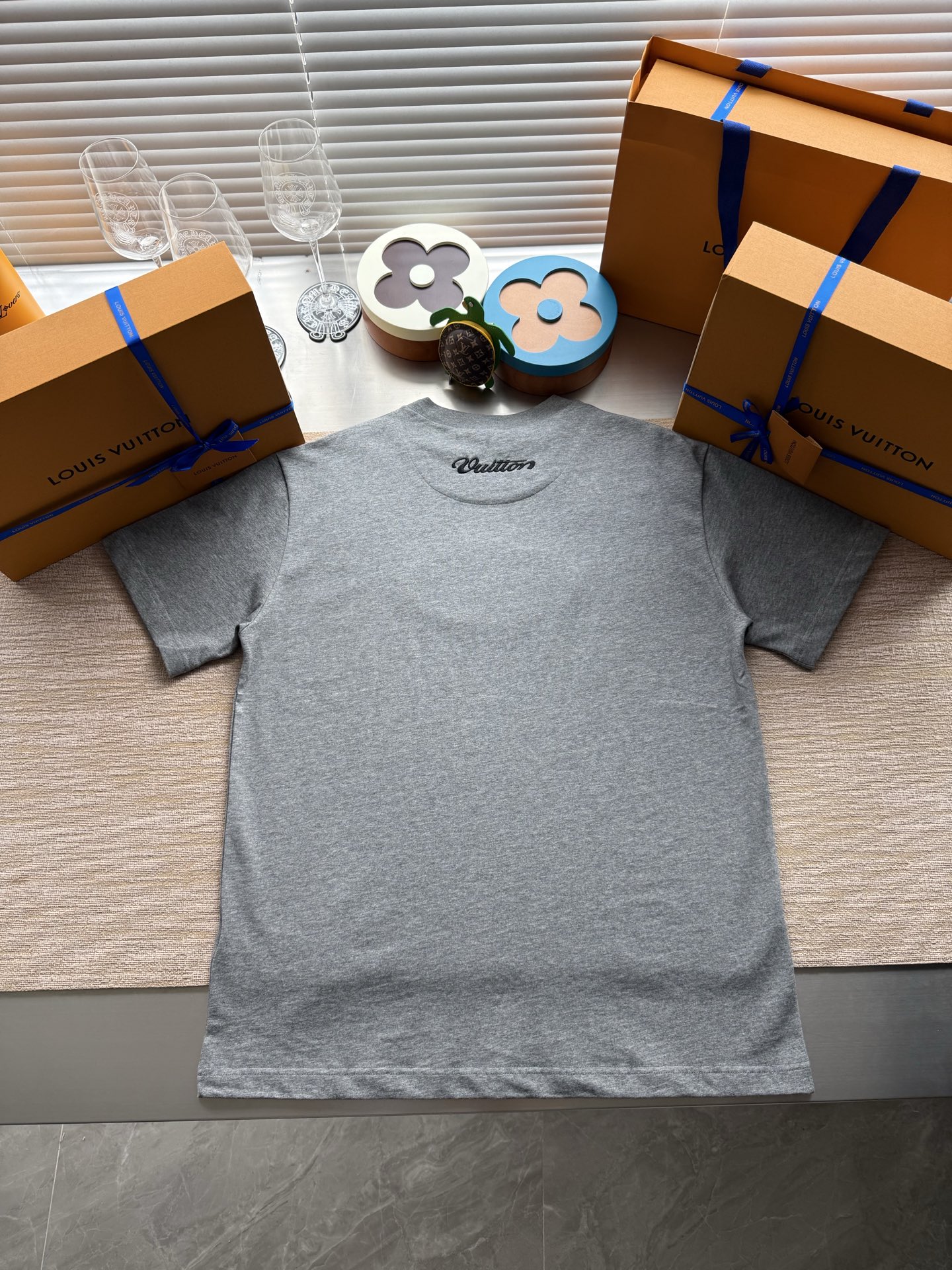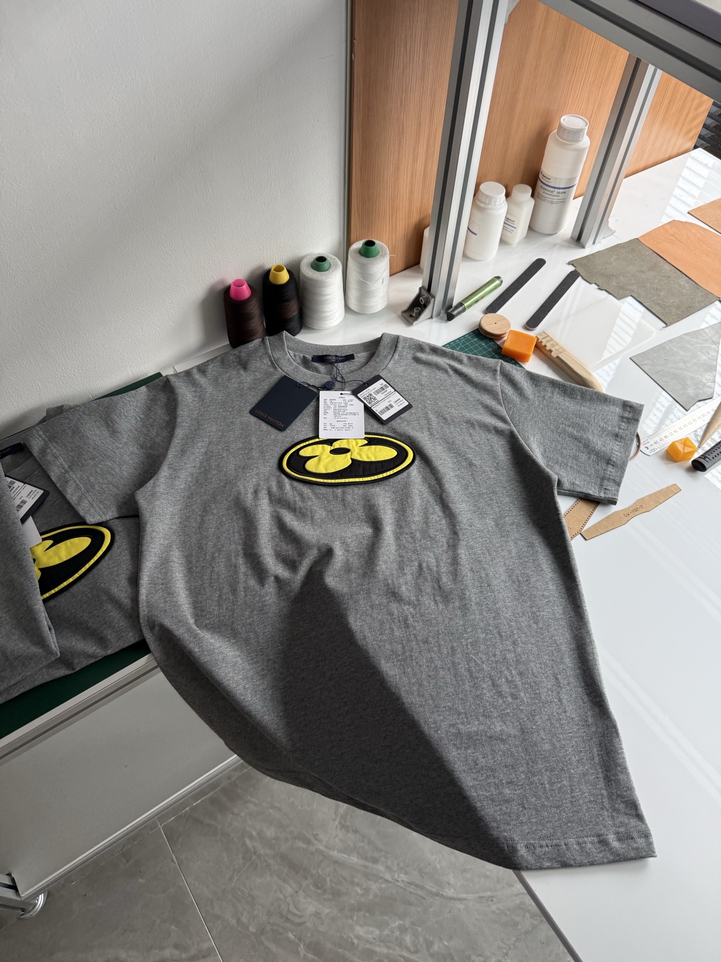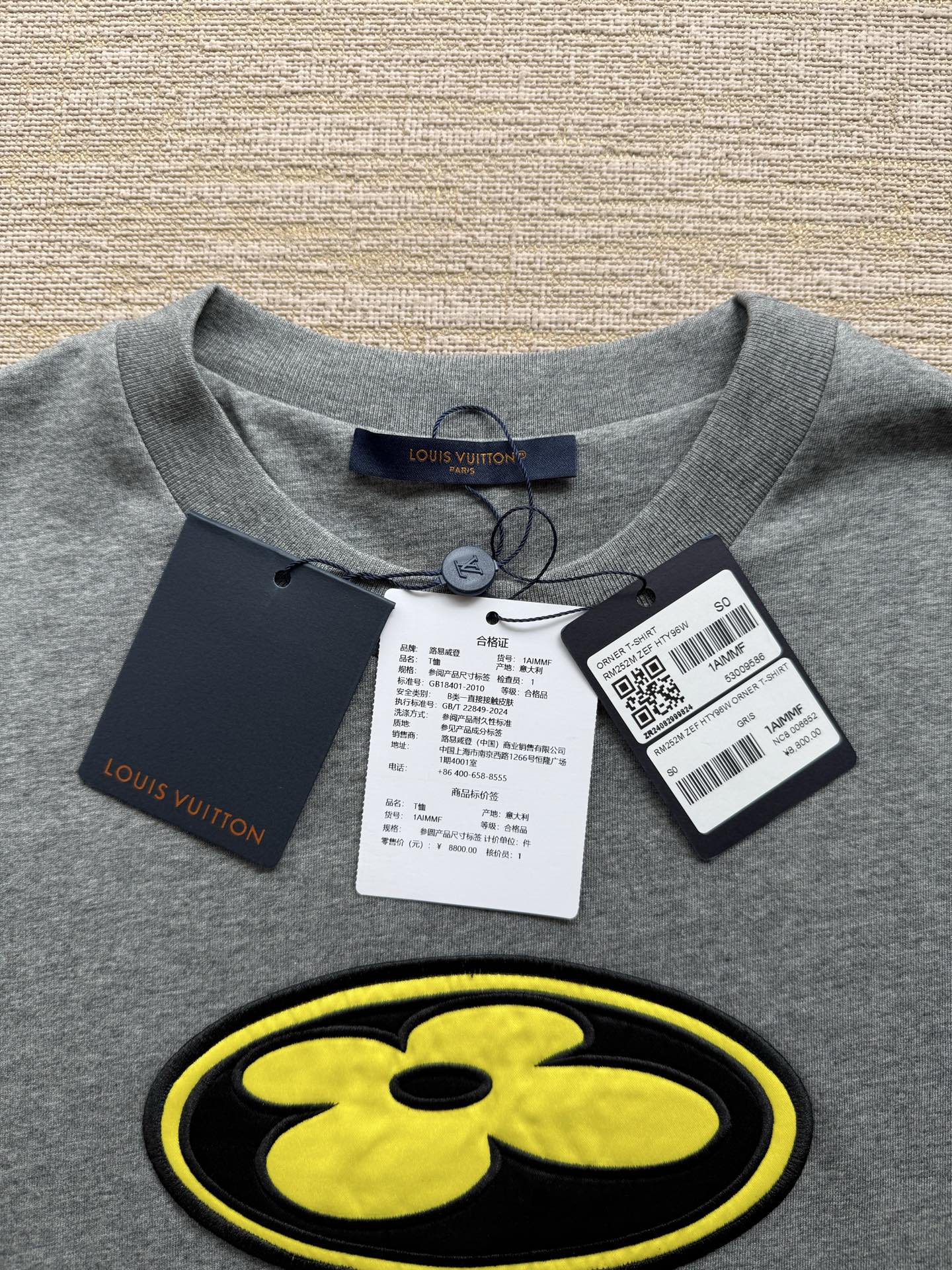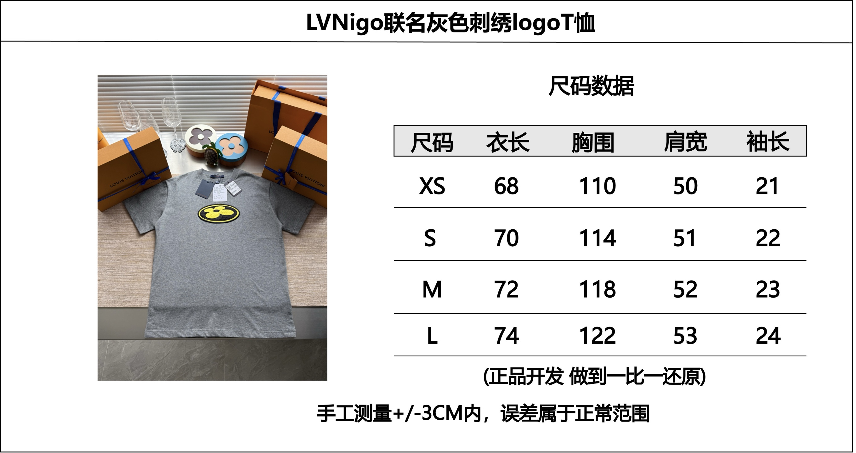 Louis Vuitton25ssNigo联名灰色刺绣logo短袖T恤‼️整件衣服8800购买ZP拆解打造,采用定制灰色纯棉面料,做到100%全棉进口纱线,意大利制造,前副饰以LV丝缎标识贴饰,后幅饰以LV刺绣字母标识,定制标志性罗纹领口,袖口 下摆双层锁边超高密度走线,真正做到1:1copy 码数:XS S M L