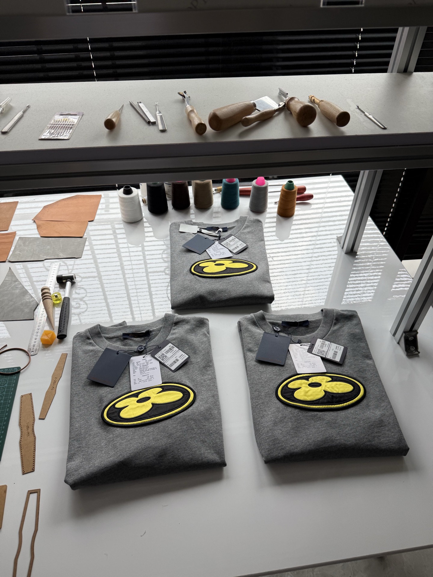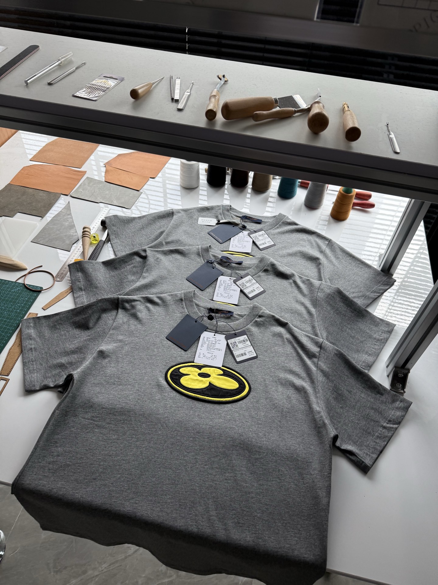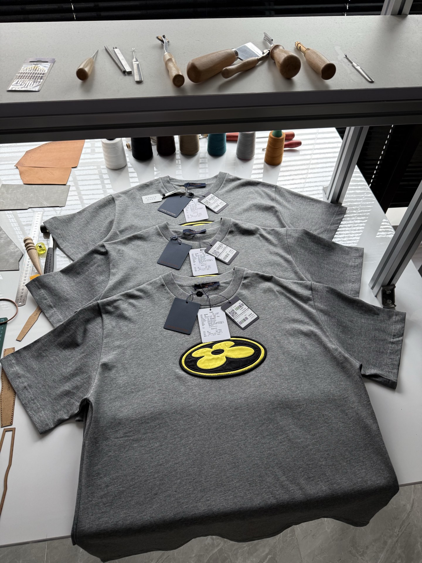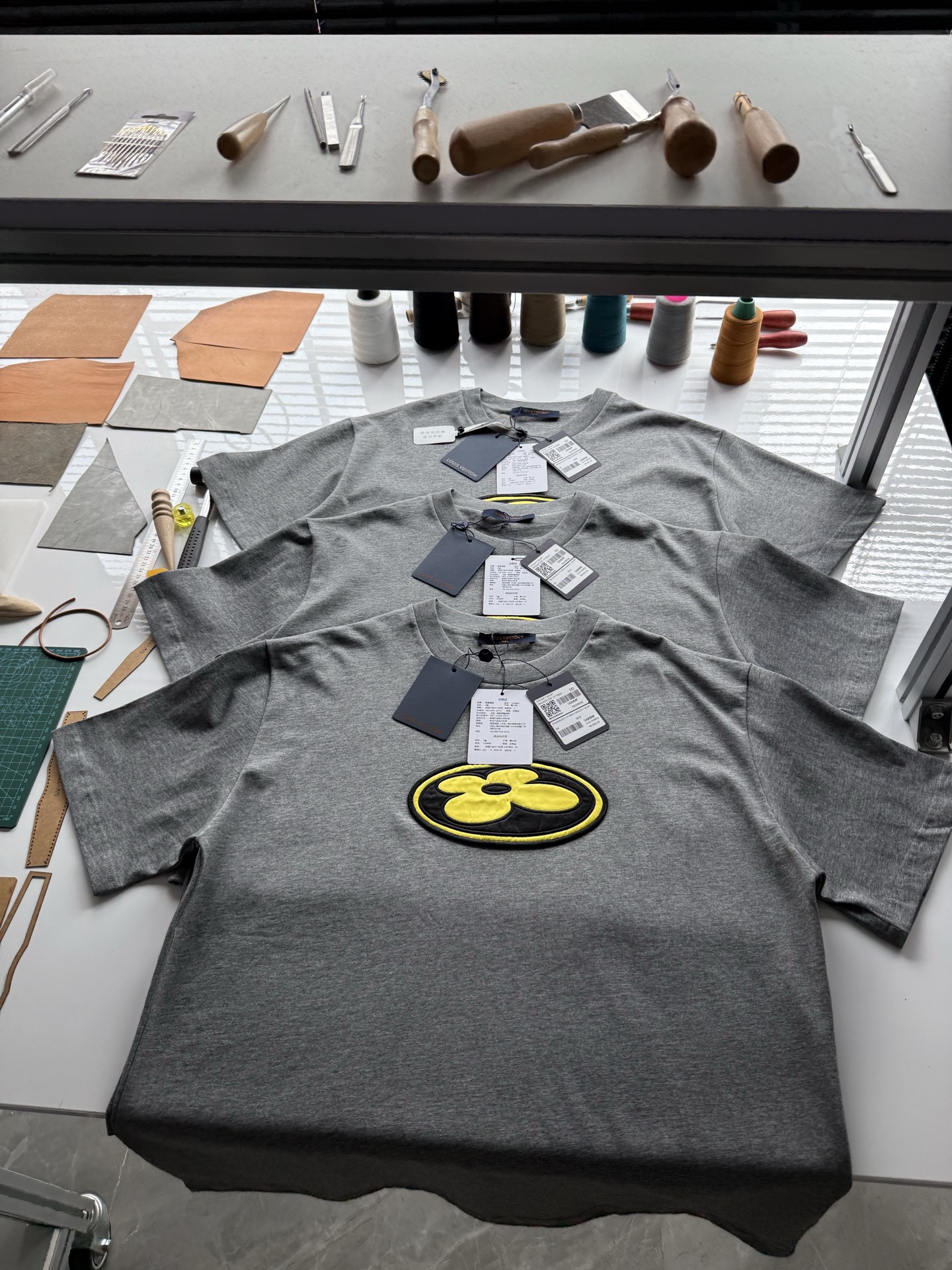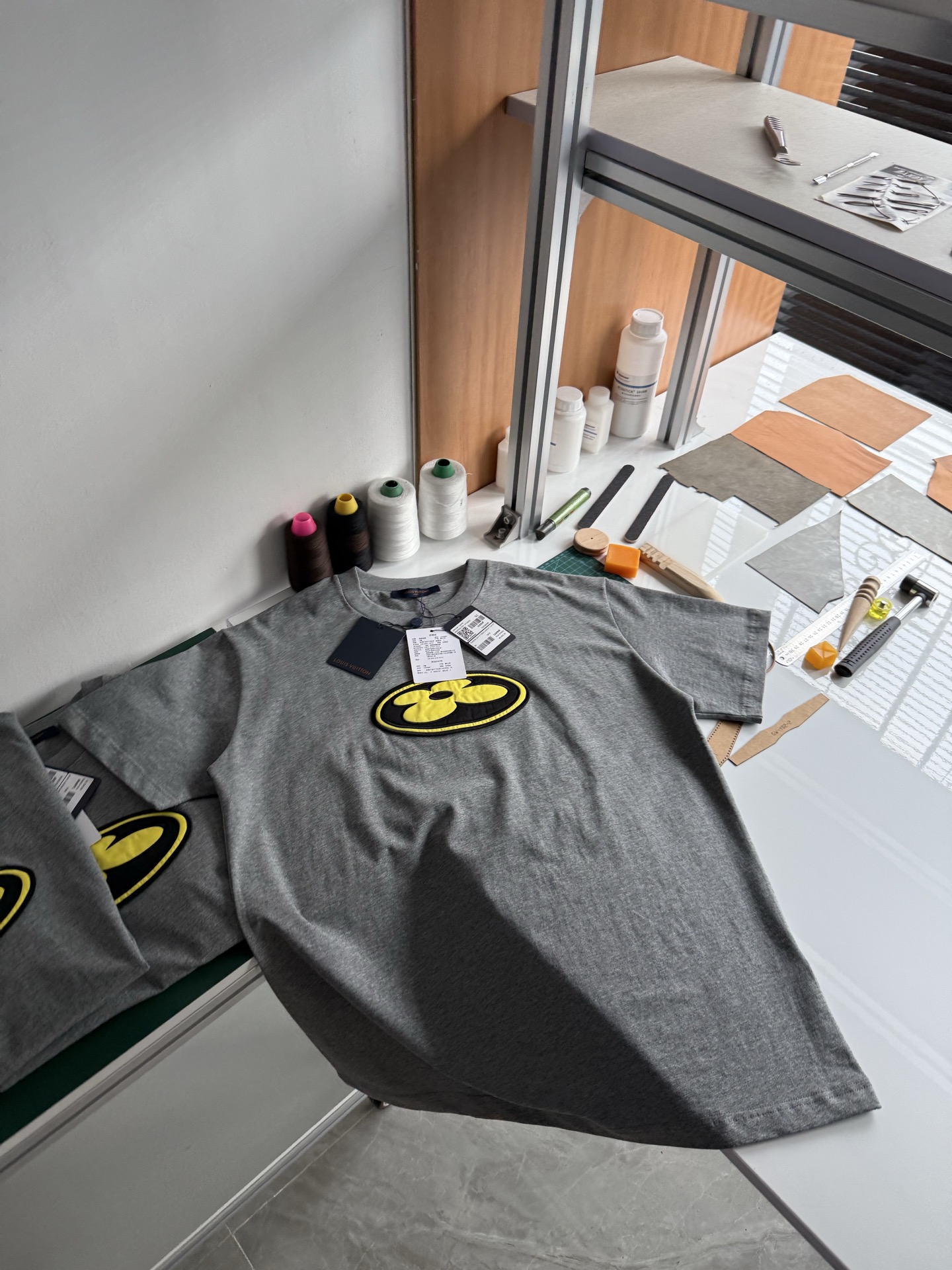 Louis Vuitton25ssNigo联名灰色刺绣logo短袖T恤‼️整件衣服8800购买ZP拆解打造,采用定制灰色纯棉面料,做到100%全棉进口纱线,意大利制造,前副饰以LV丝缎标识贴饰,后幅饰以LV刺绣字母标识,定制标志性罗纹领口,袖口 下摆双层锁边超高密度走线,真正做到1:1copy 码数:XS S M L
