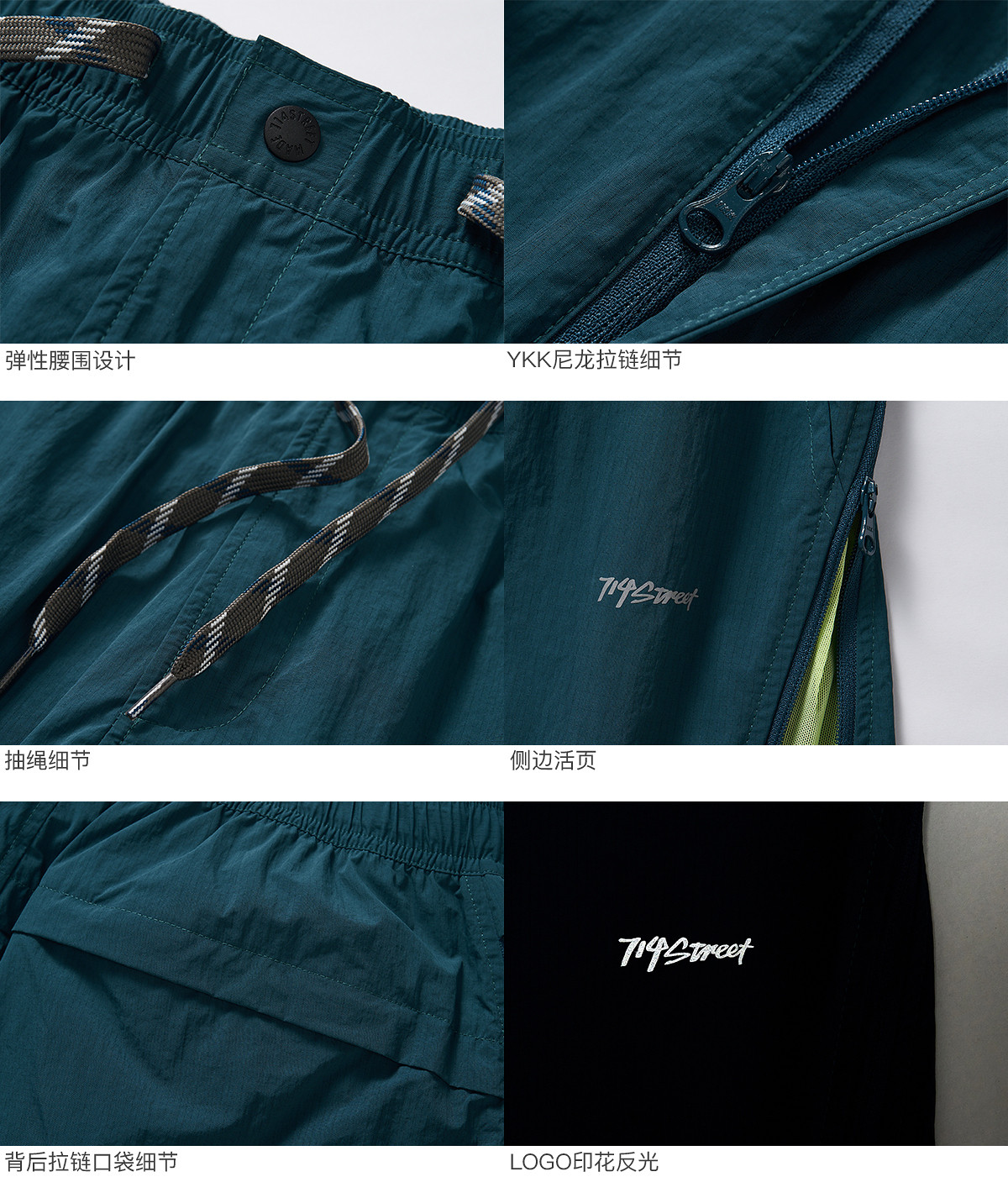 714street耐磨抗皱侧拉链撞色户外短裤男2025夏季新款休闲运动裤