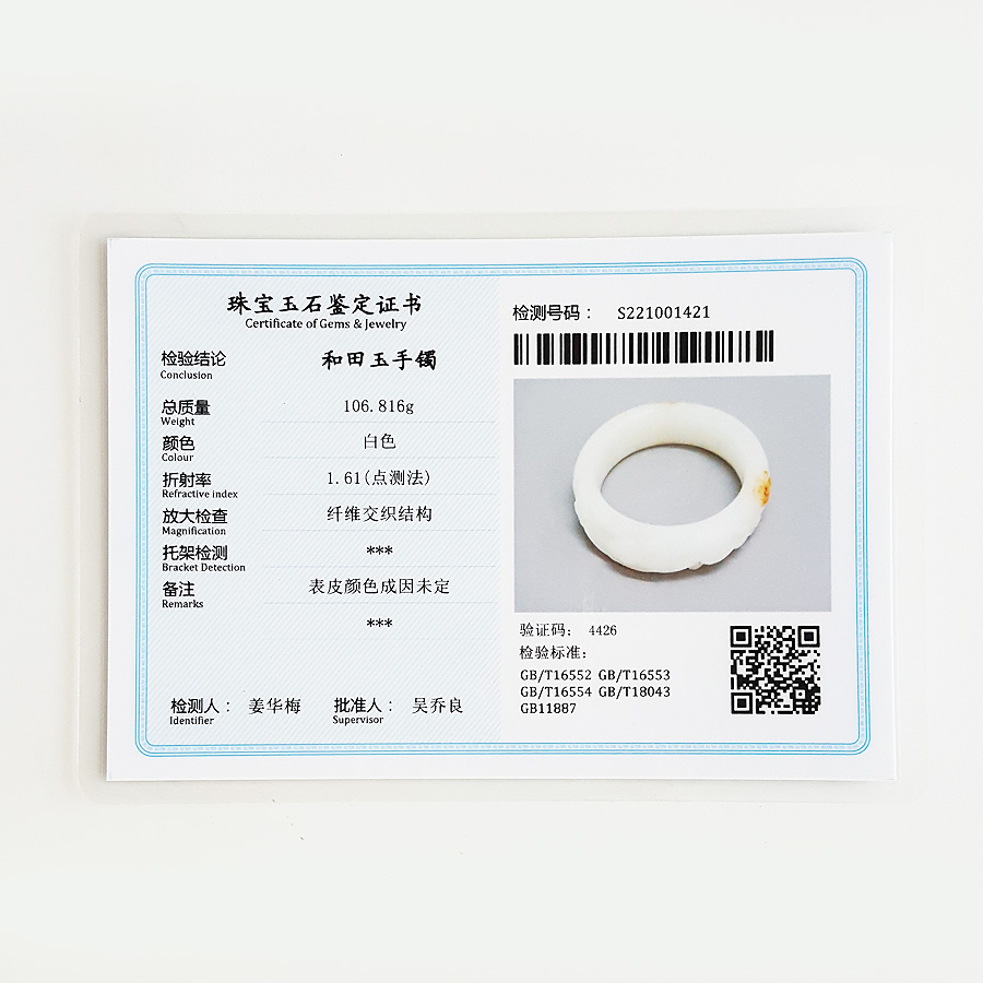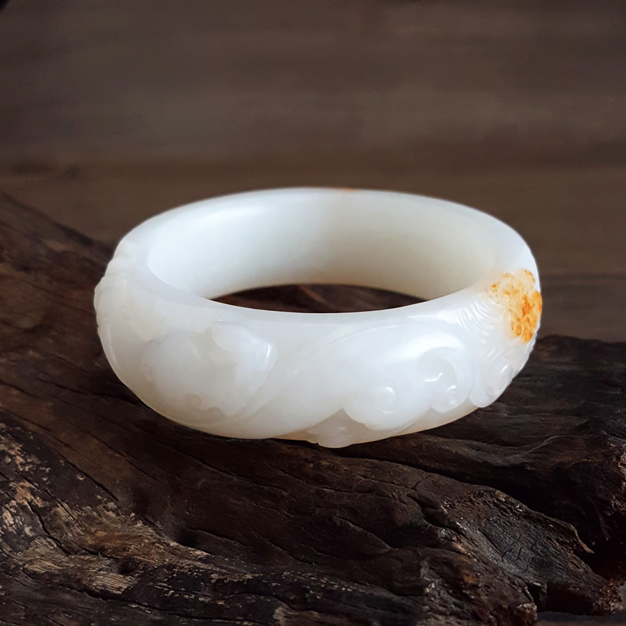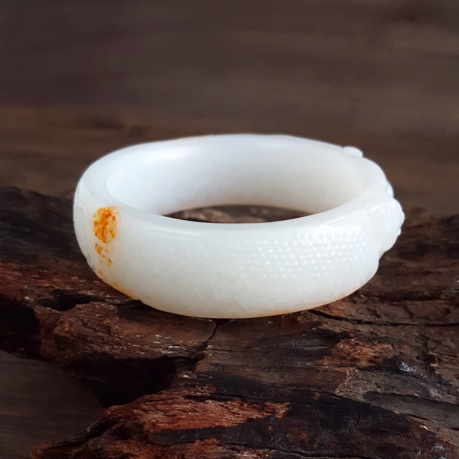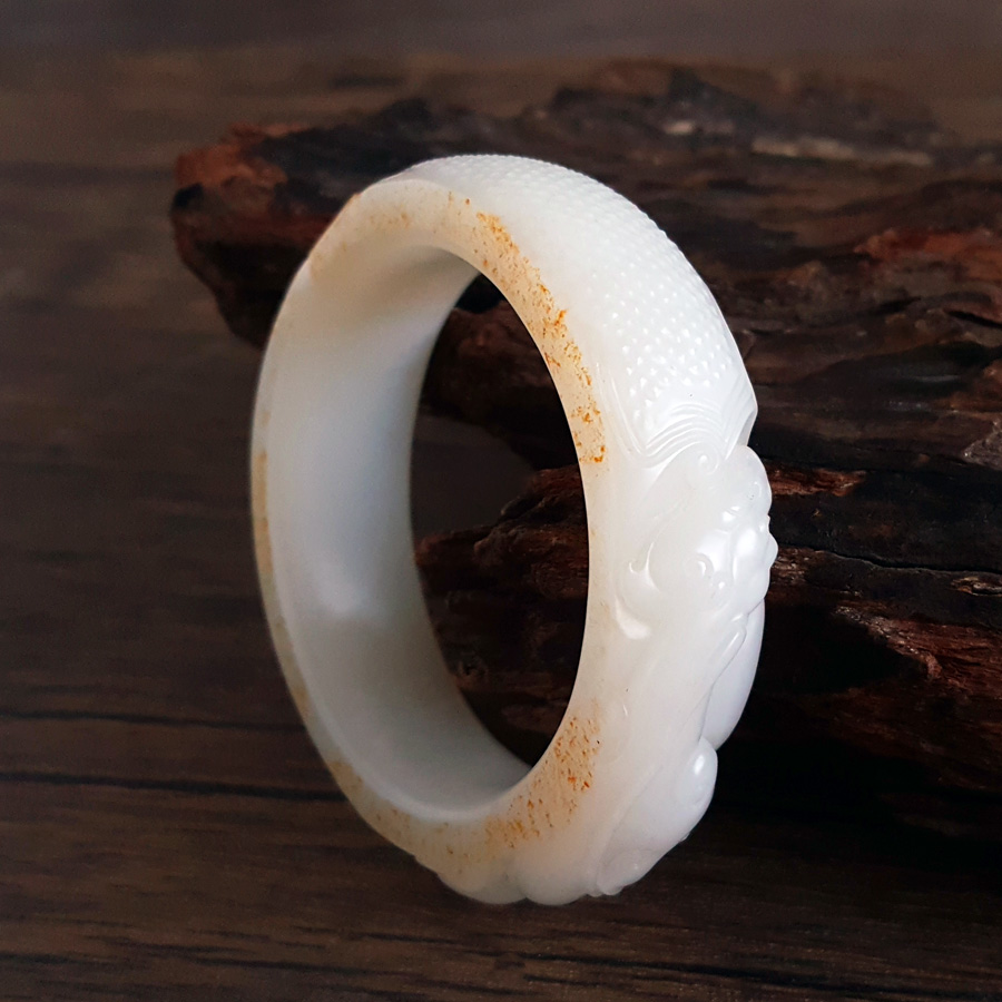 名称 | 天然收藏级新疆料轮胎镯细腻一级白油润度佳56.5号瑞兽和田玉手镯 |