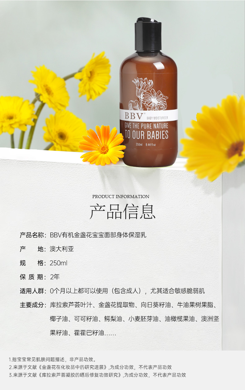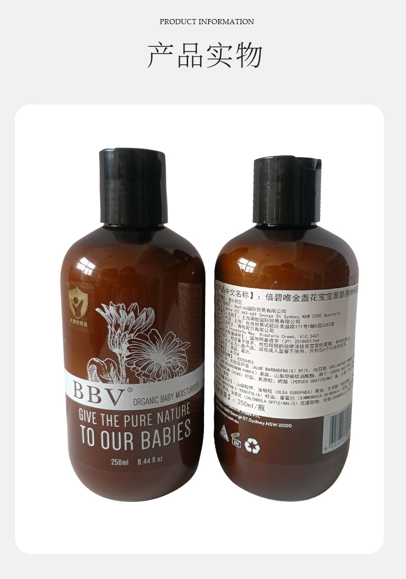 【澳洲直邮 请实名下单 收件人填写完整姓名】BBV金盏花面部身体保湿乳250ml*1瓶+BBV金盏花按摩油100ml*1瓶 发货后不支持七天无理由哦!