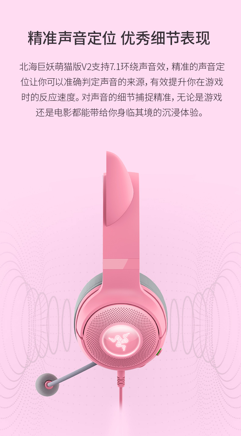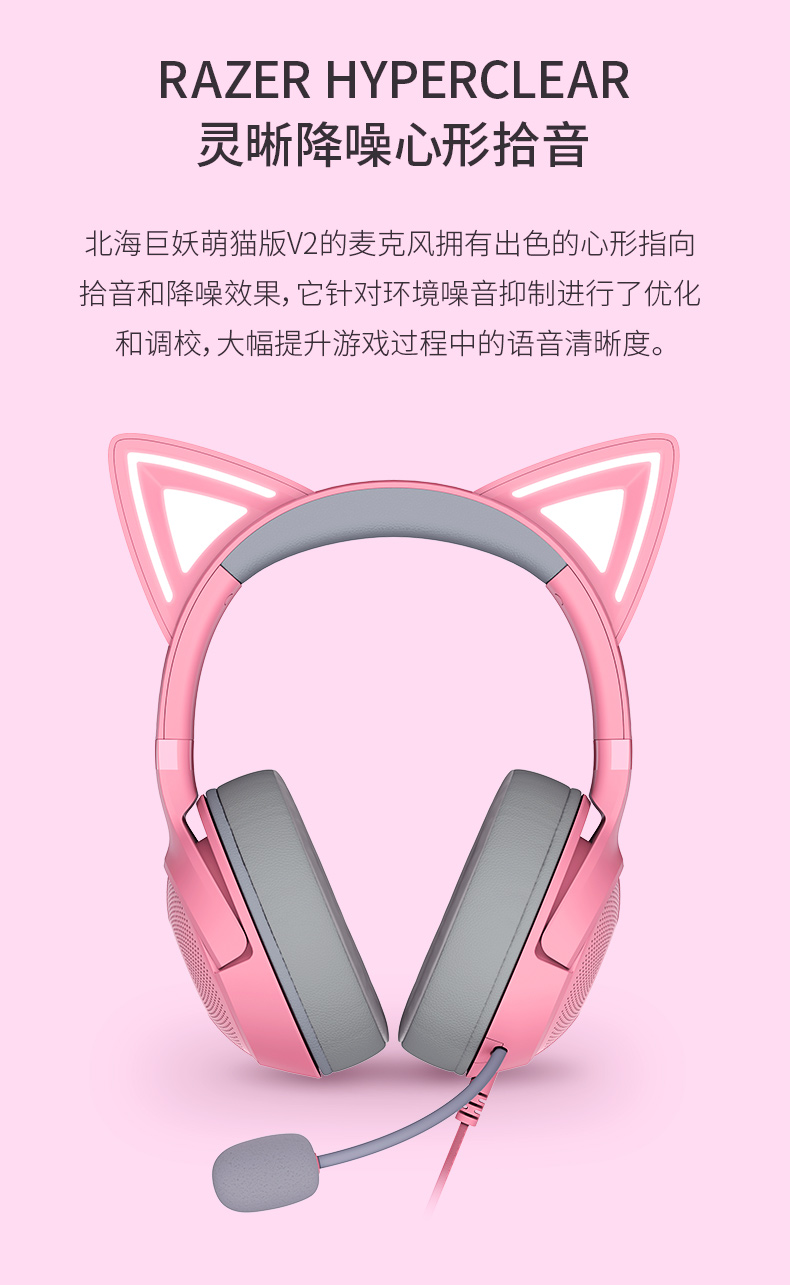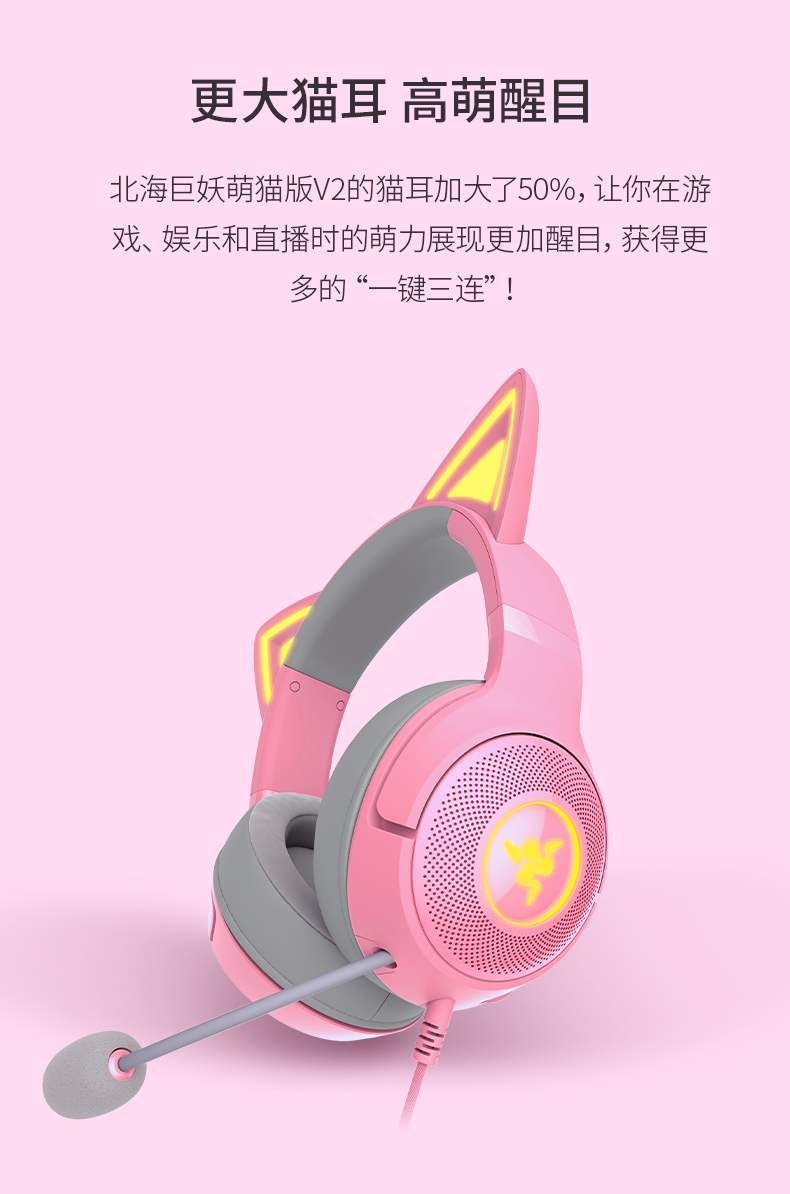 Razer雷蛇北海巨妖萌猫版V2 BT有线蓝牙耳机 网红猫耳【雷蛇官方直营,3年有限质保】