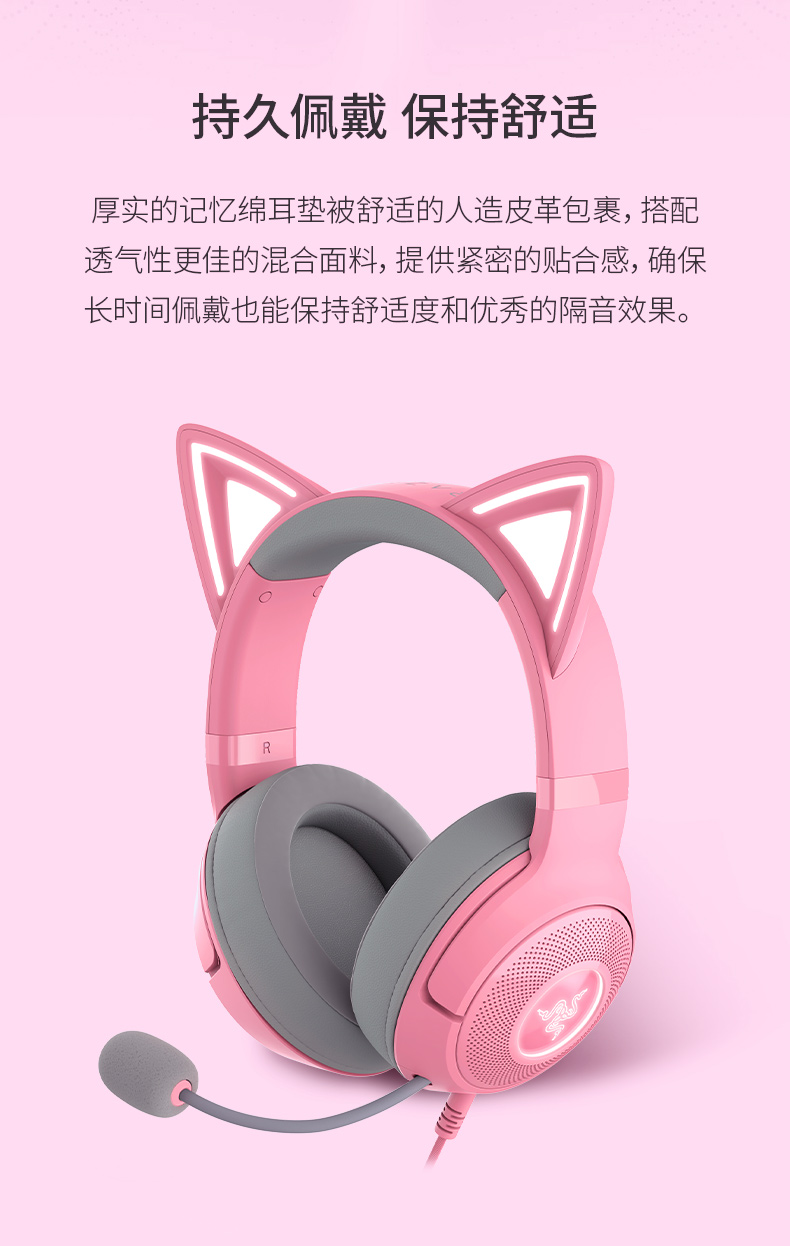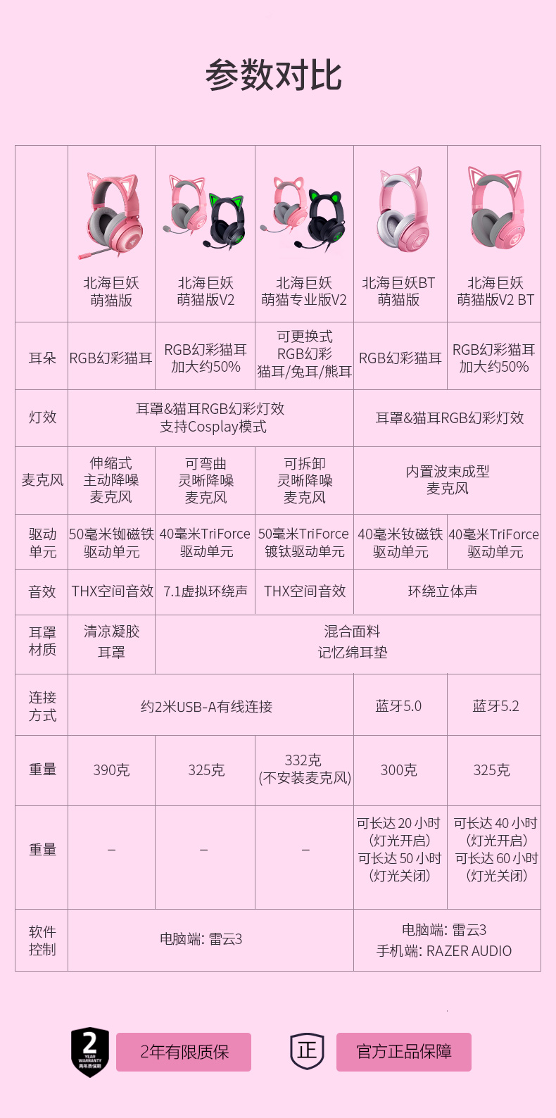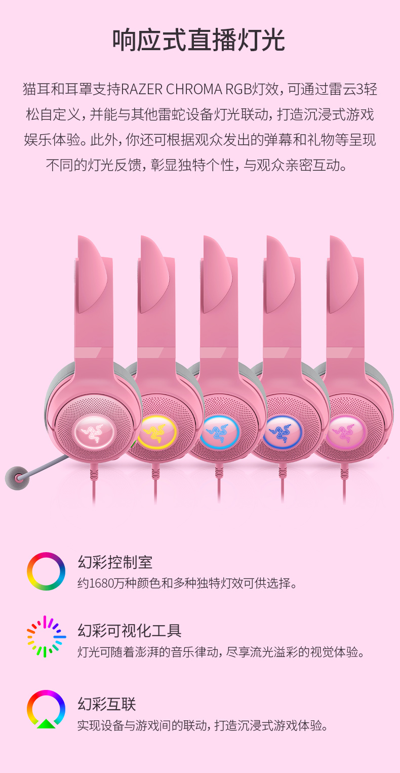 Razer雷蛇北海巨妖萌猫版V2 BT有线蓝牙耳机 网红猫耳【雷蛇官方直营,3年有限质保】