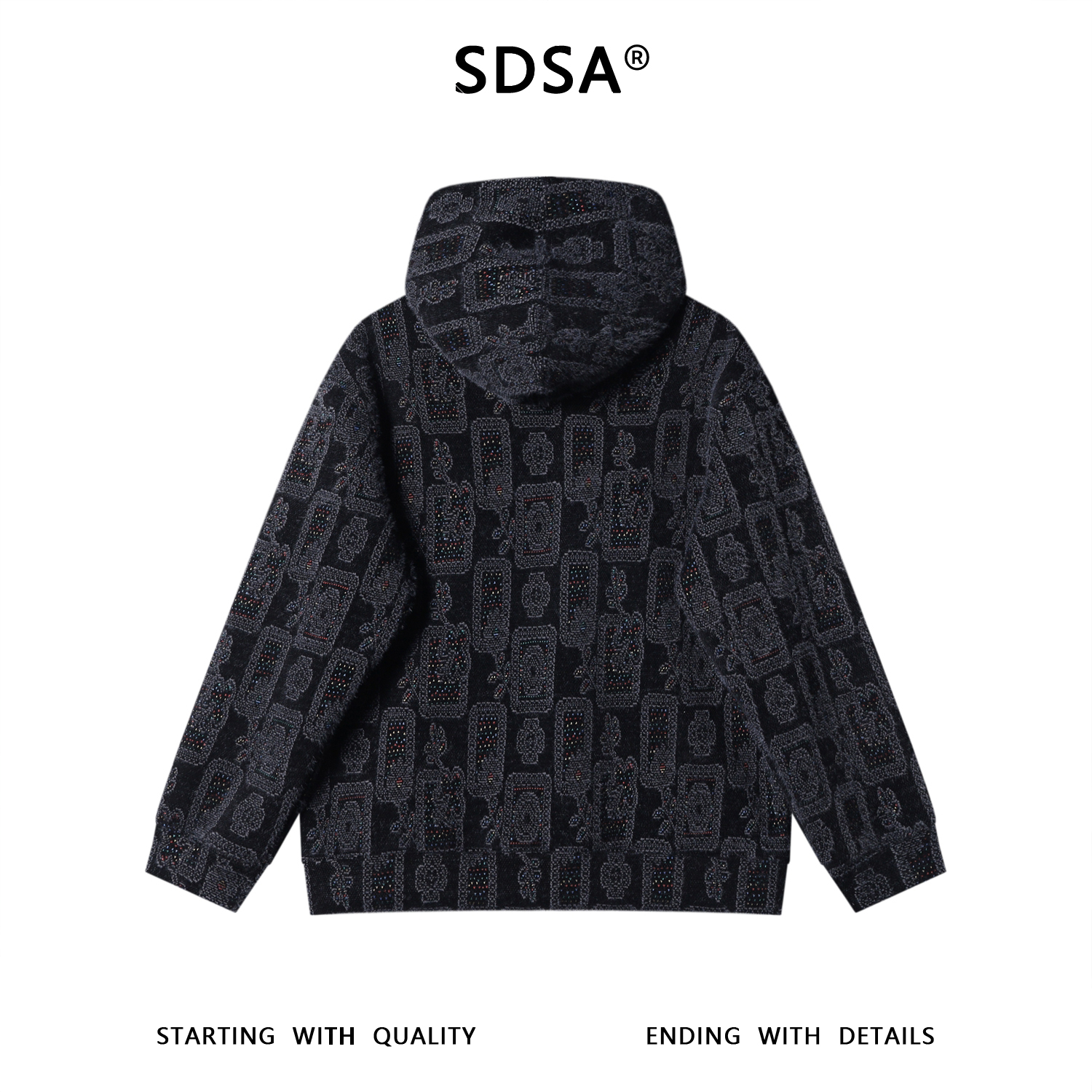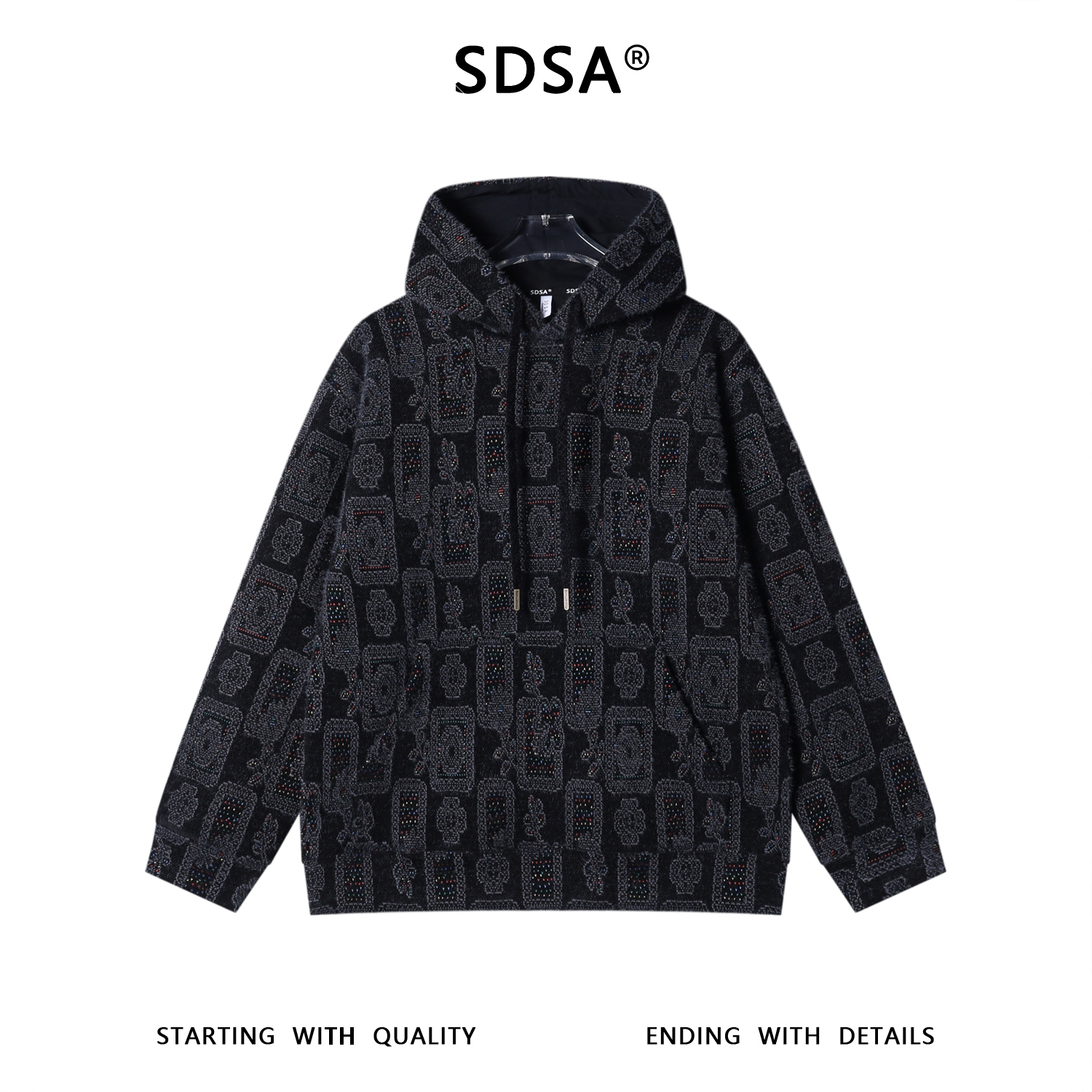 WY1366SDSA男士秋冬新款痞帅男装设计感提花撞色抽绳连帽卫衣百搭时尚