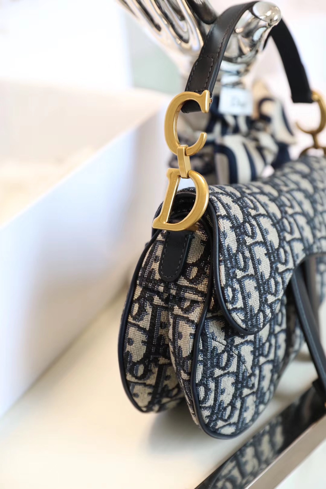 DIO* Oblique 中号🔹老花马鞍手袋 蓝色Dior Oblique提花帆布马鞍配以牛皮革细节。全铜厚金复古扣配饰,经典重温zp级别品质开发🛠 独家原材料组装成品,让你背入专柜随便对比零差距✅