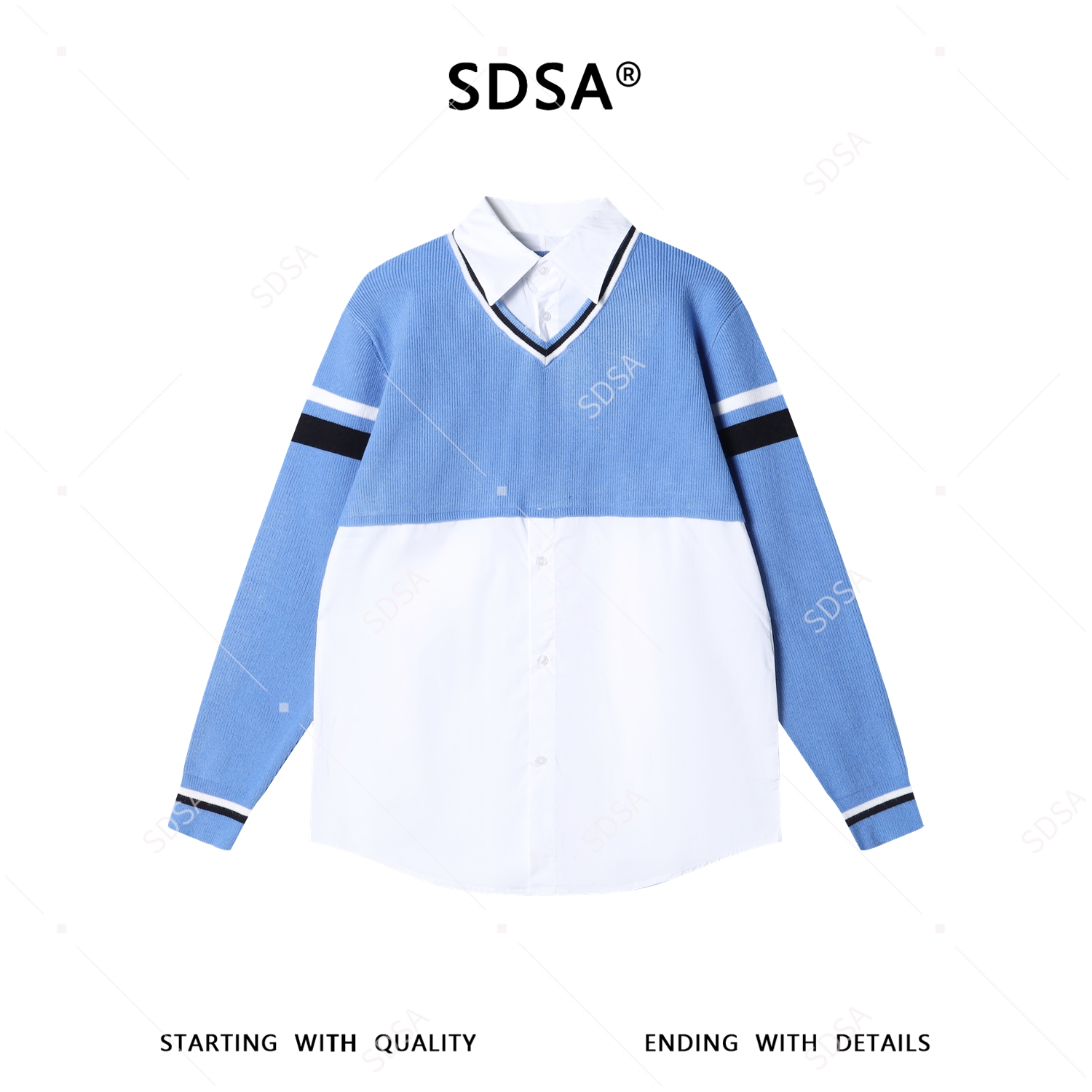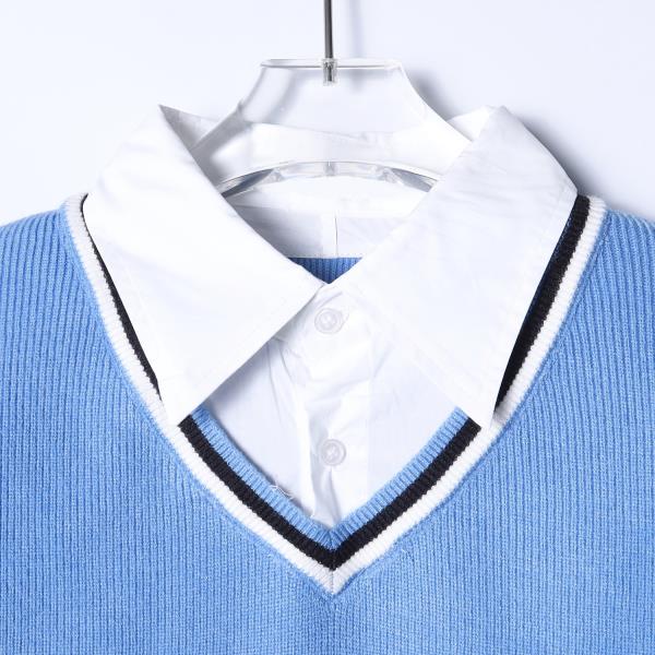 SDSA男装2026新款高贵轻奢时尚撞色拼接假两件毛衣衬衫百搭休闲