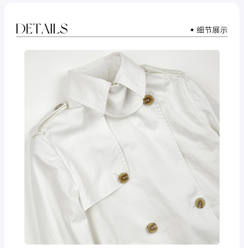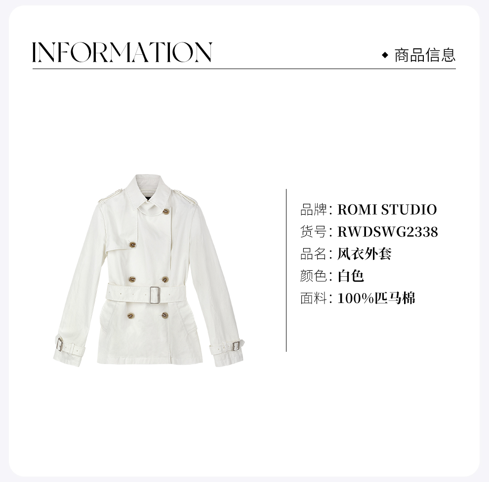 ROMI STUDIO“优雅老钱”100%匹马棉双排扣收腰白风衣RWDSWG2338