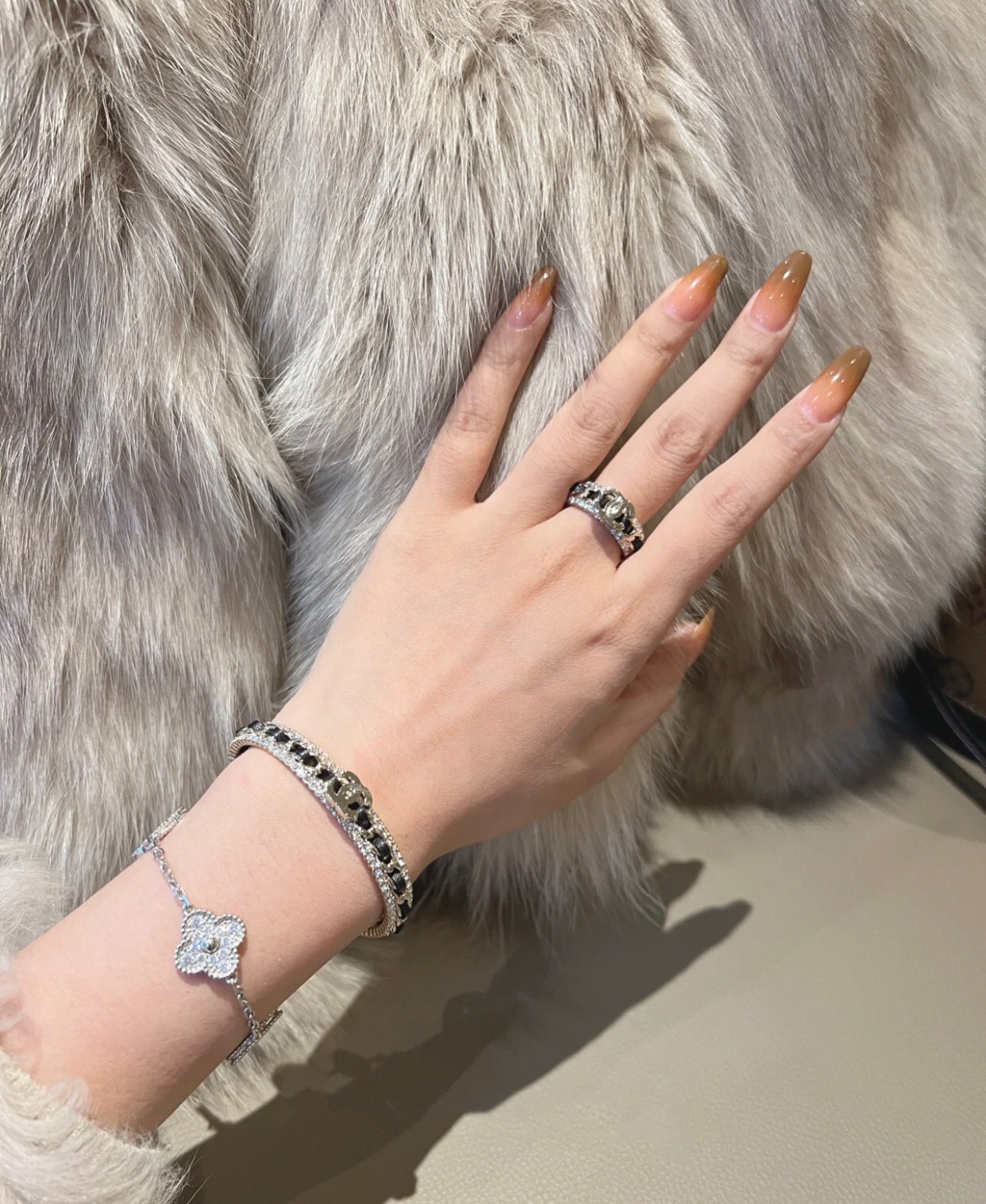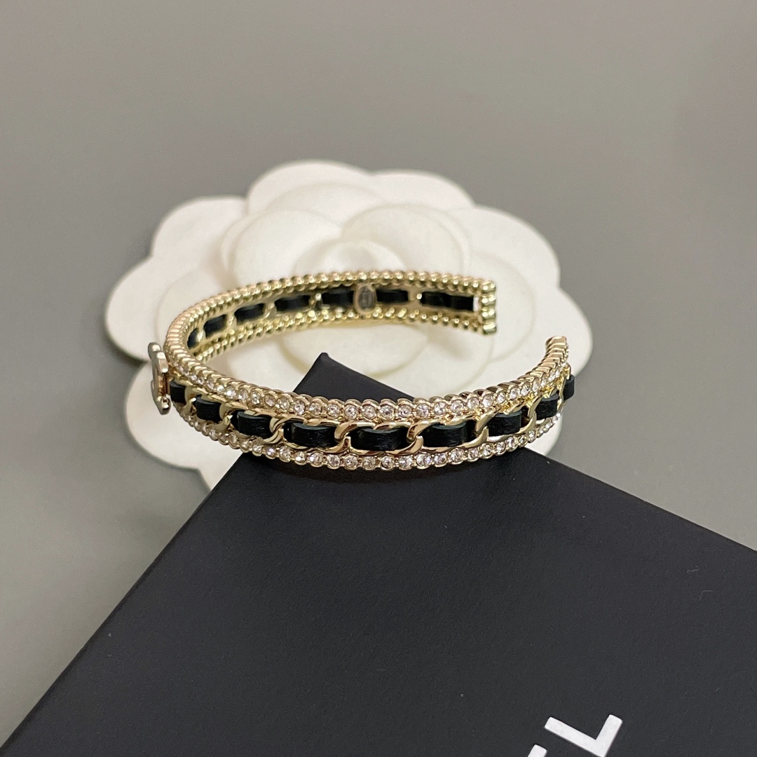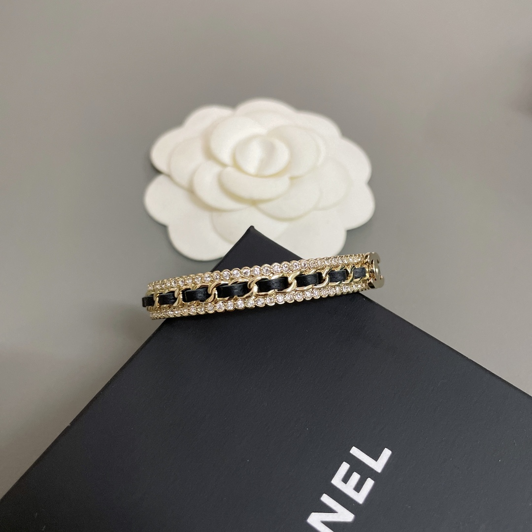 尺寸适中,开口设计,很方便!非常适合现在的季节搭配,工艺非常的细腻,两边五金是链条纯手工穿皮,边缘围着一圈施华洛钻的设计,成本特别高,整体造型让人过目不忘的喜欢