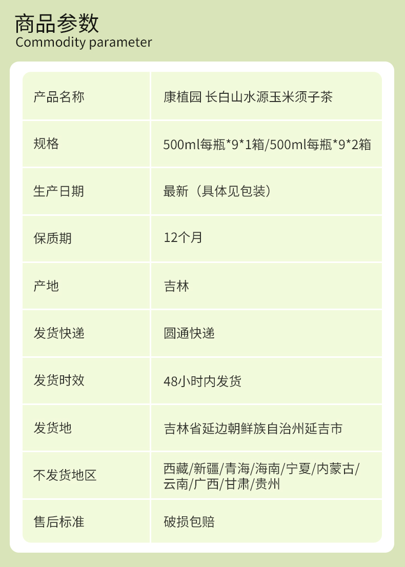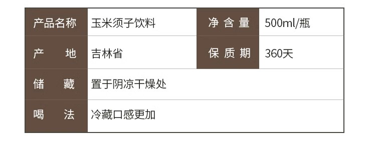 【东北特产】长白山水源玉米须子茶0糖0脂肪 500ml*9瓶