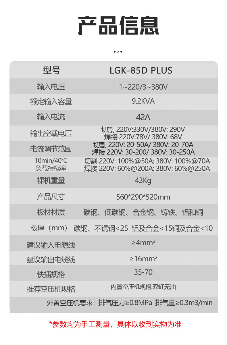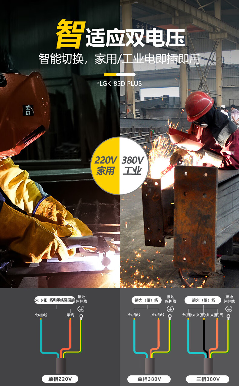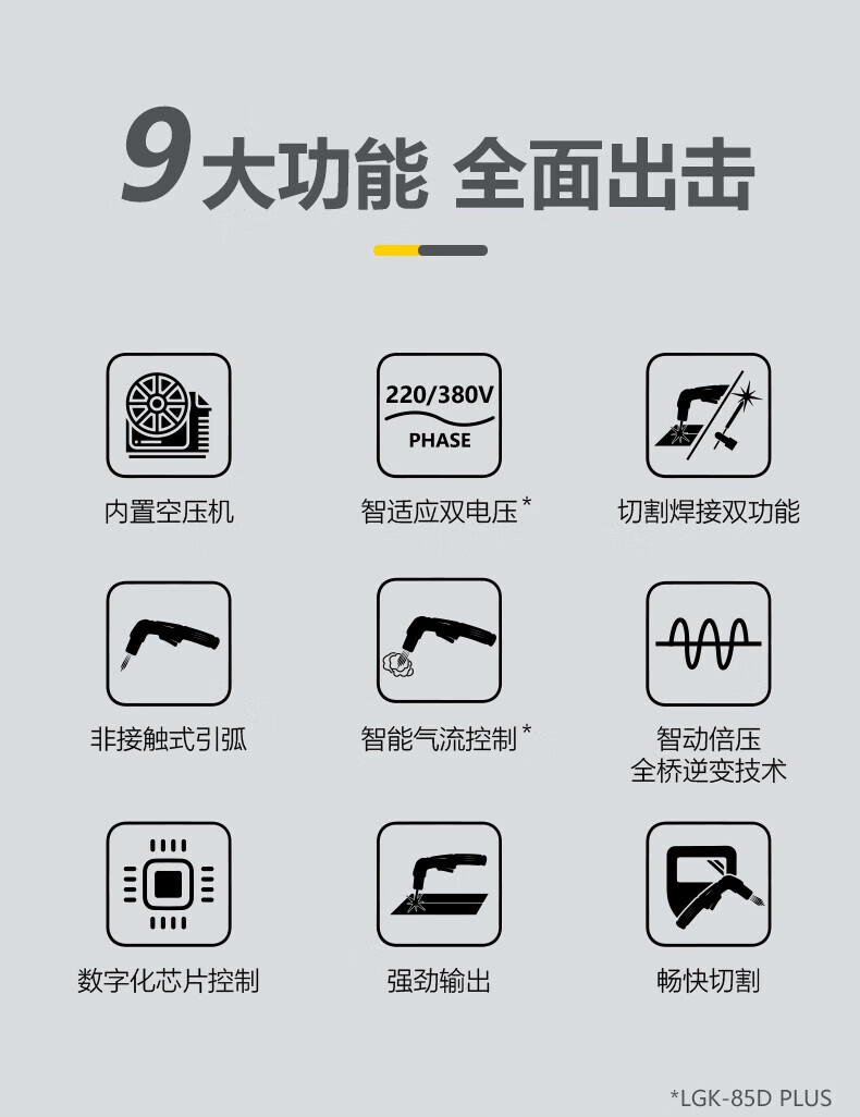 沪工 LGK-85D PLUS 等离子切割机220v380v双电压电焊两用一体工业机带内置气泵