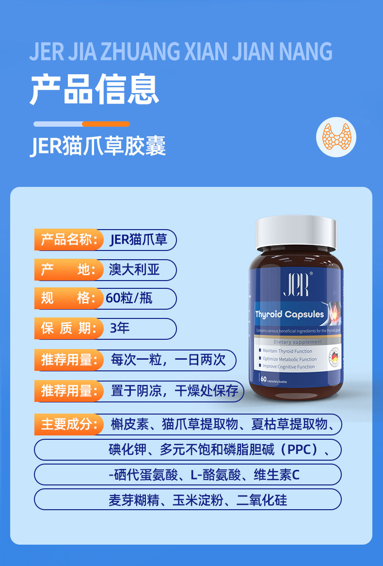 JER猫爪草胶囊进口平衡甲腺健康脖子舒服畅快呼吸官方正品
