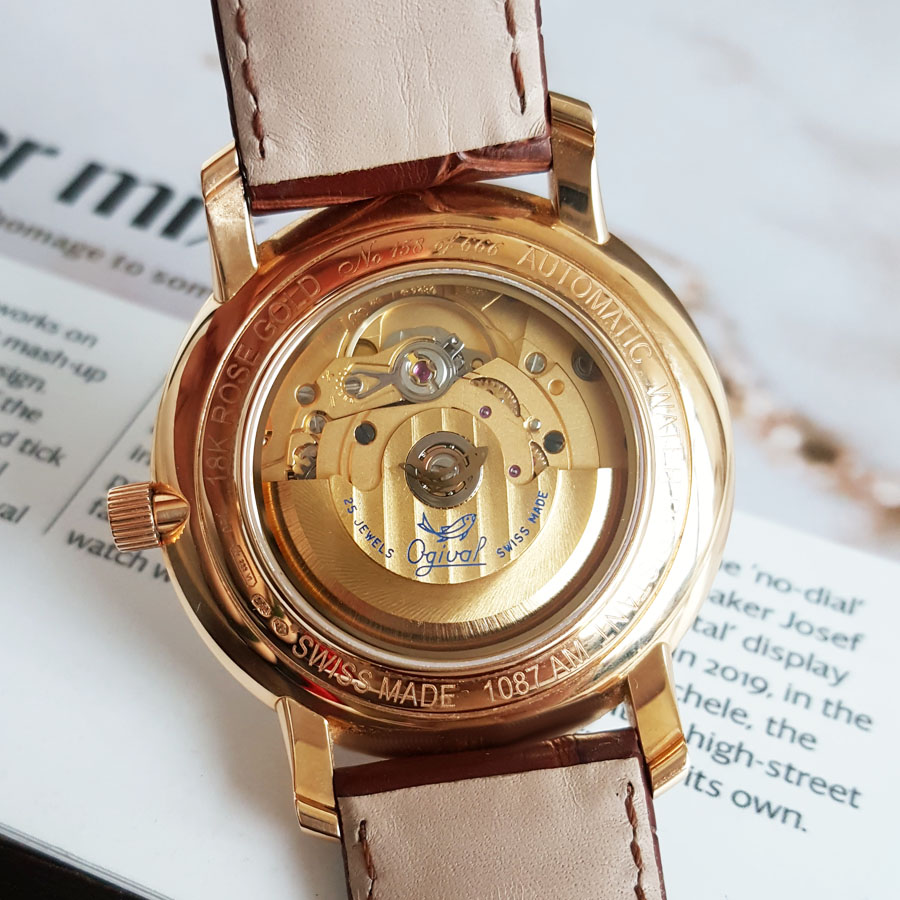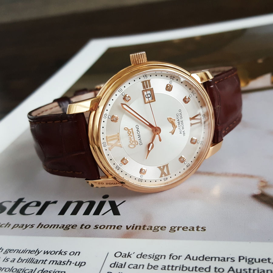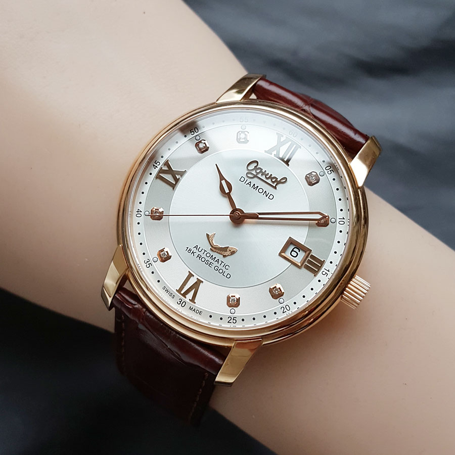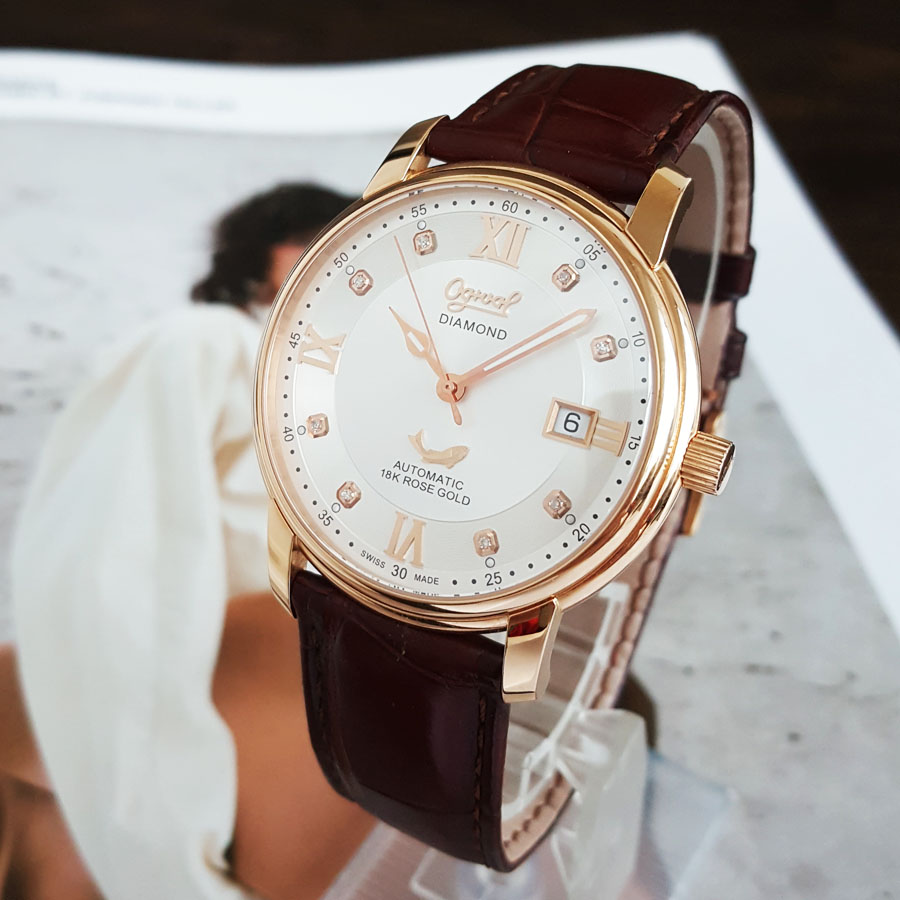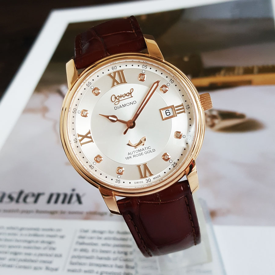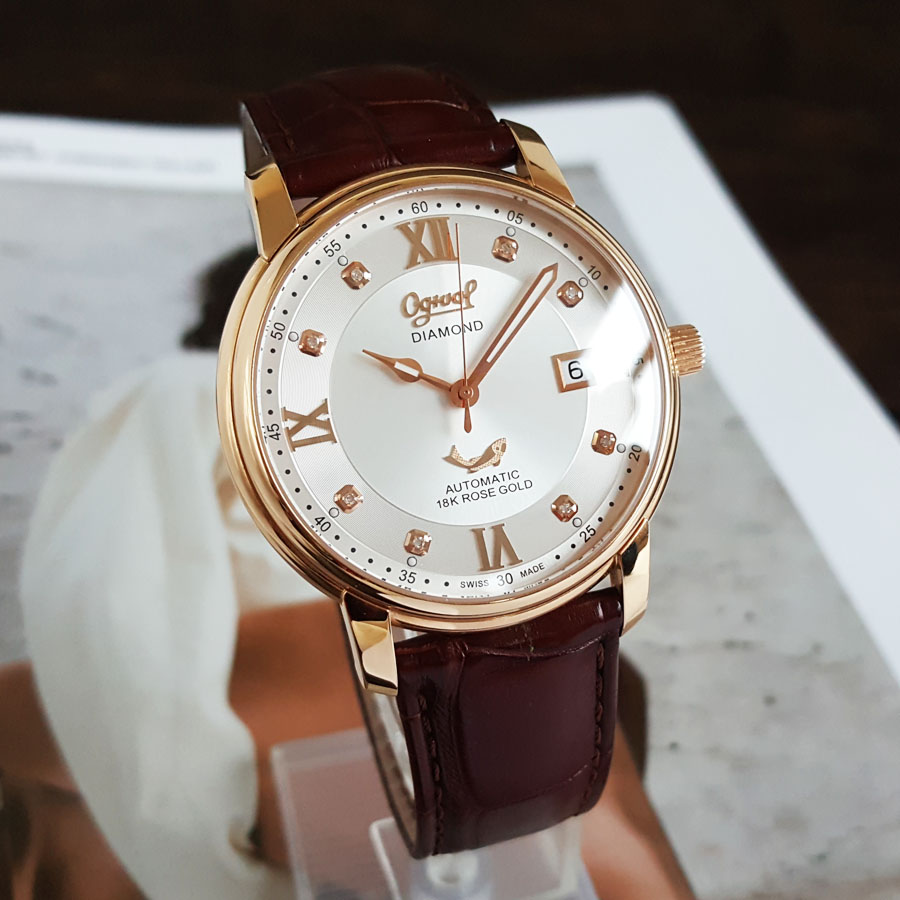 【95新】OGIVAL 爱其华自动机械机芯日期显示40MM(男款)18K玫瑰金090326NJS18