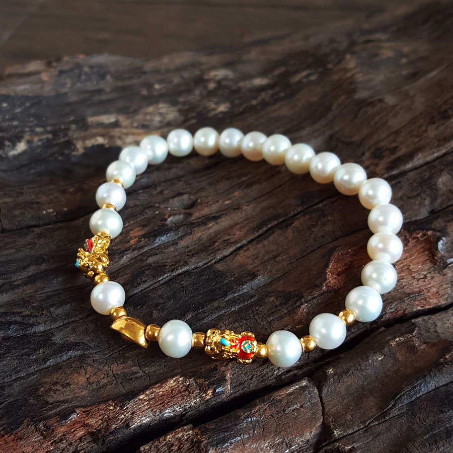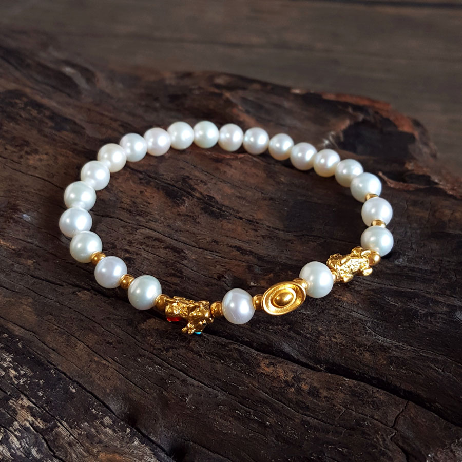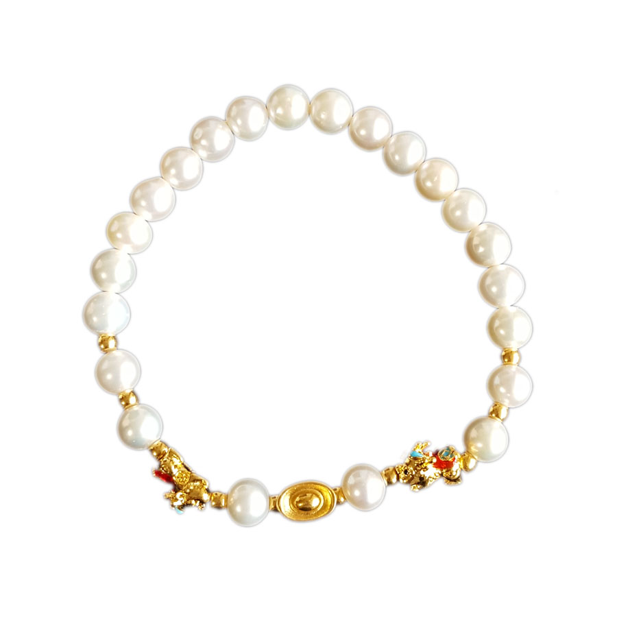 名称 | AU999黄金瑞兽元宝造型(招财辟邪)白色约6.1MM珍珠手串 |