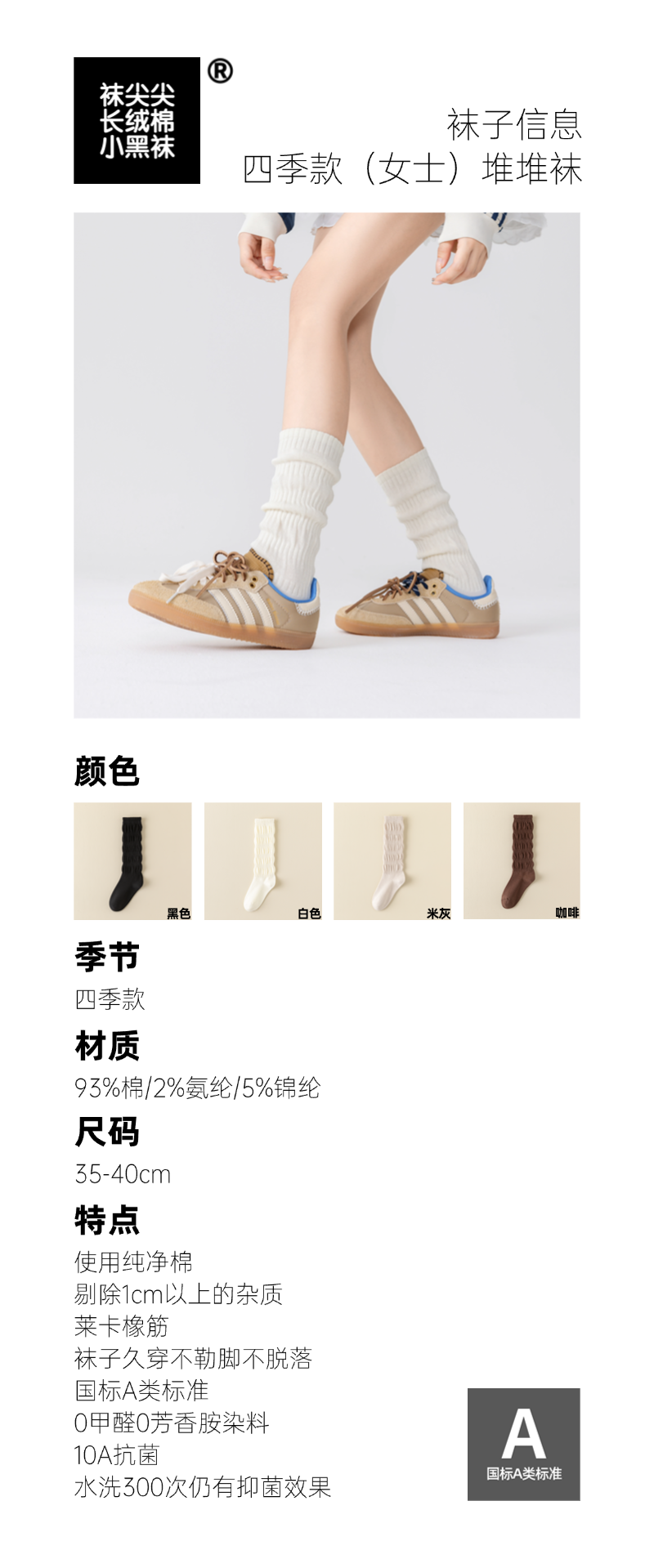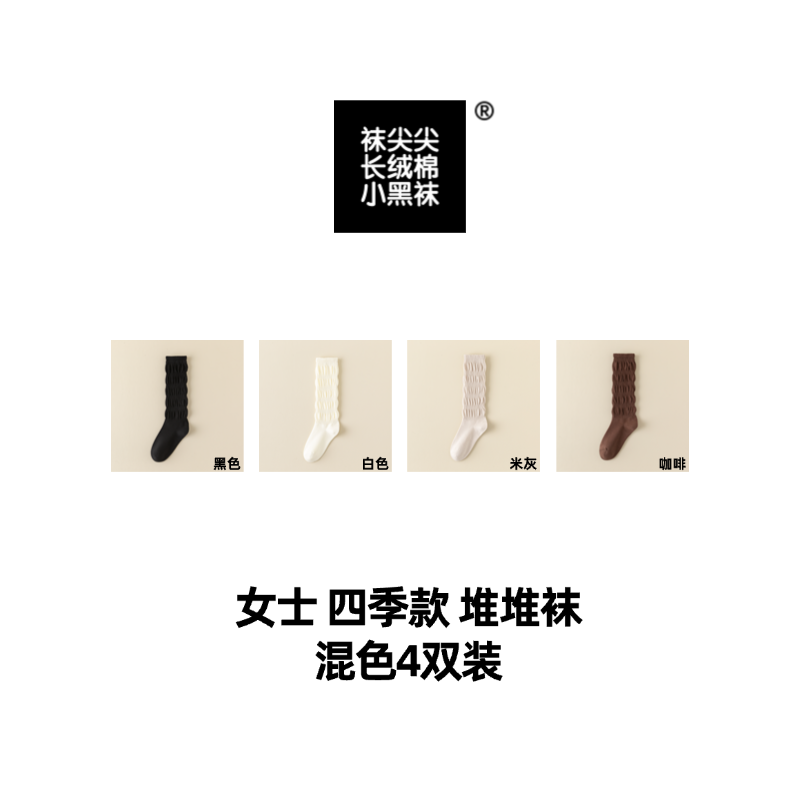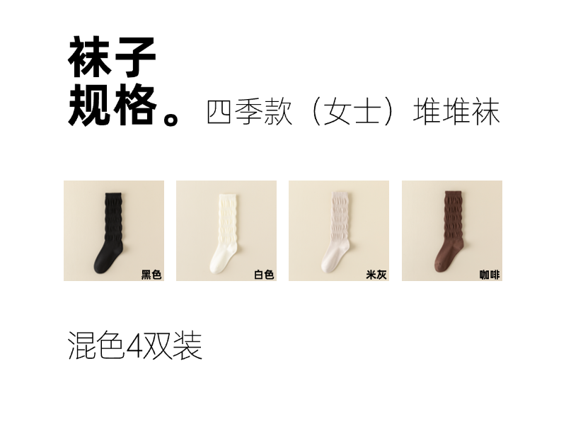 袜尖尖四季款美拉德色系堆堆袜百搭单品4双装 商品图0
