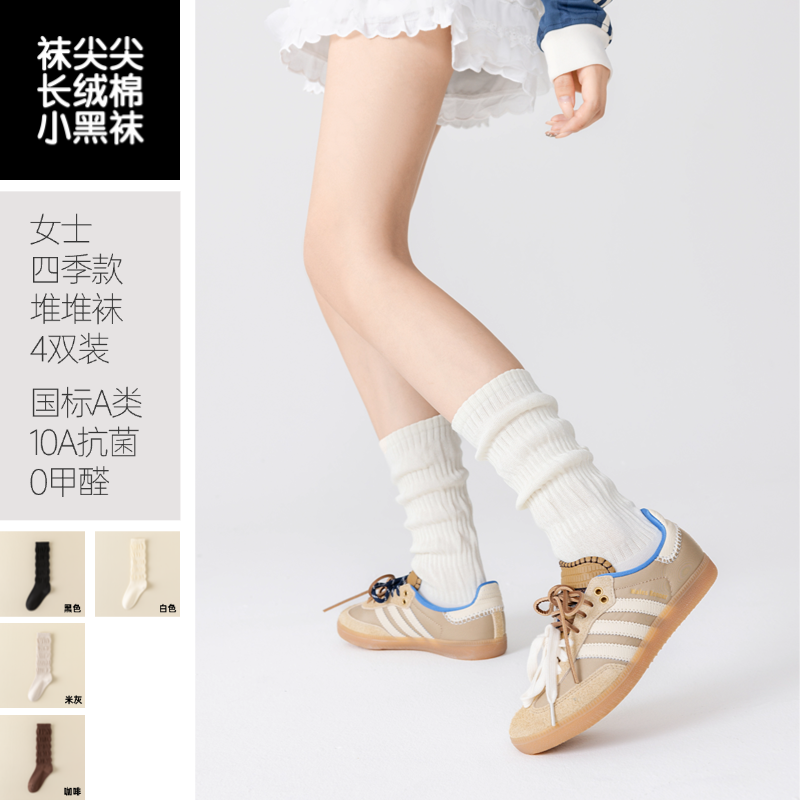 袜尖尖四季款美拉德色系堆堆袜百搭单品4双装