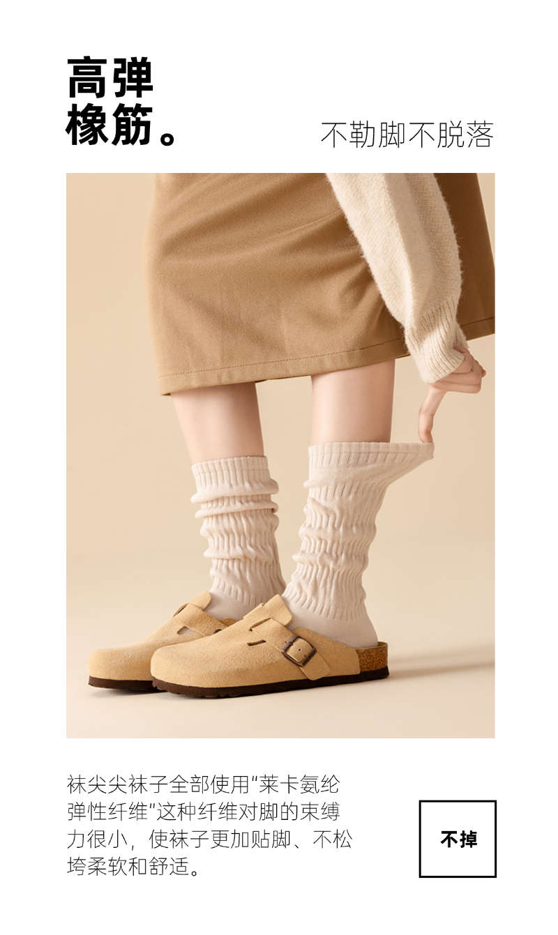 袜尖尖四季款美拉德色系堆堆袜百搭单品4双装 商品图4