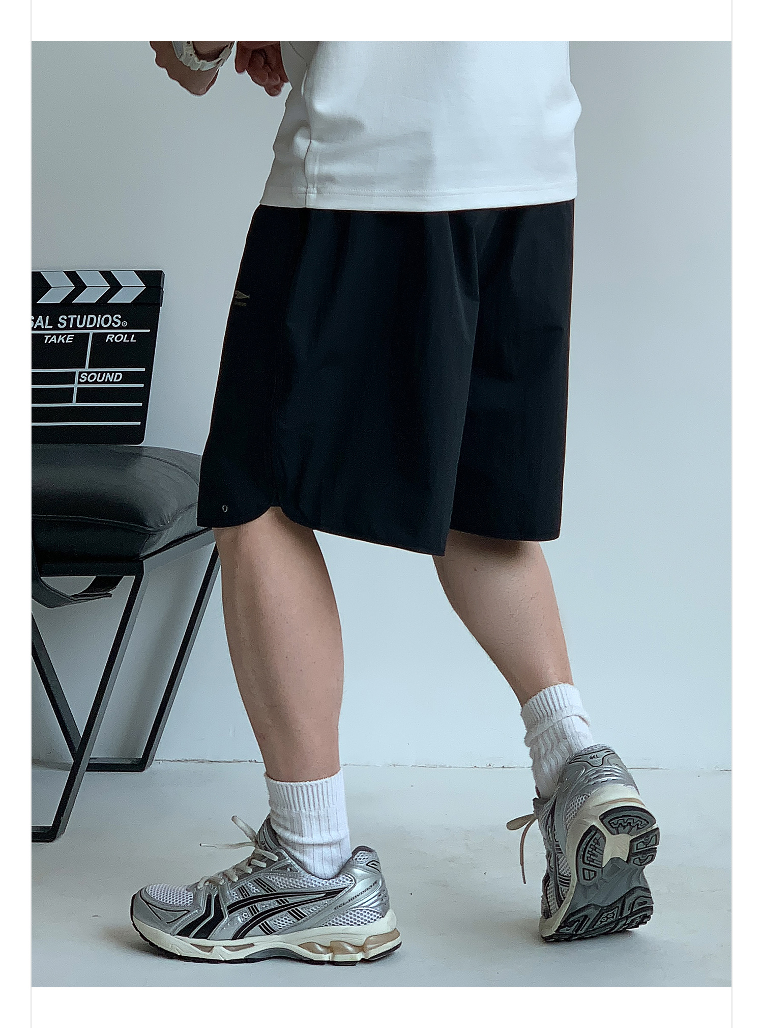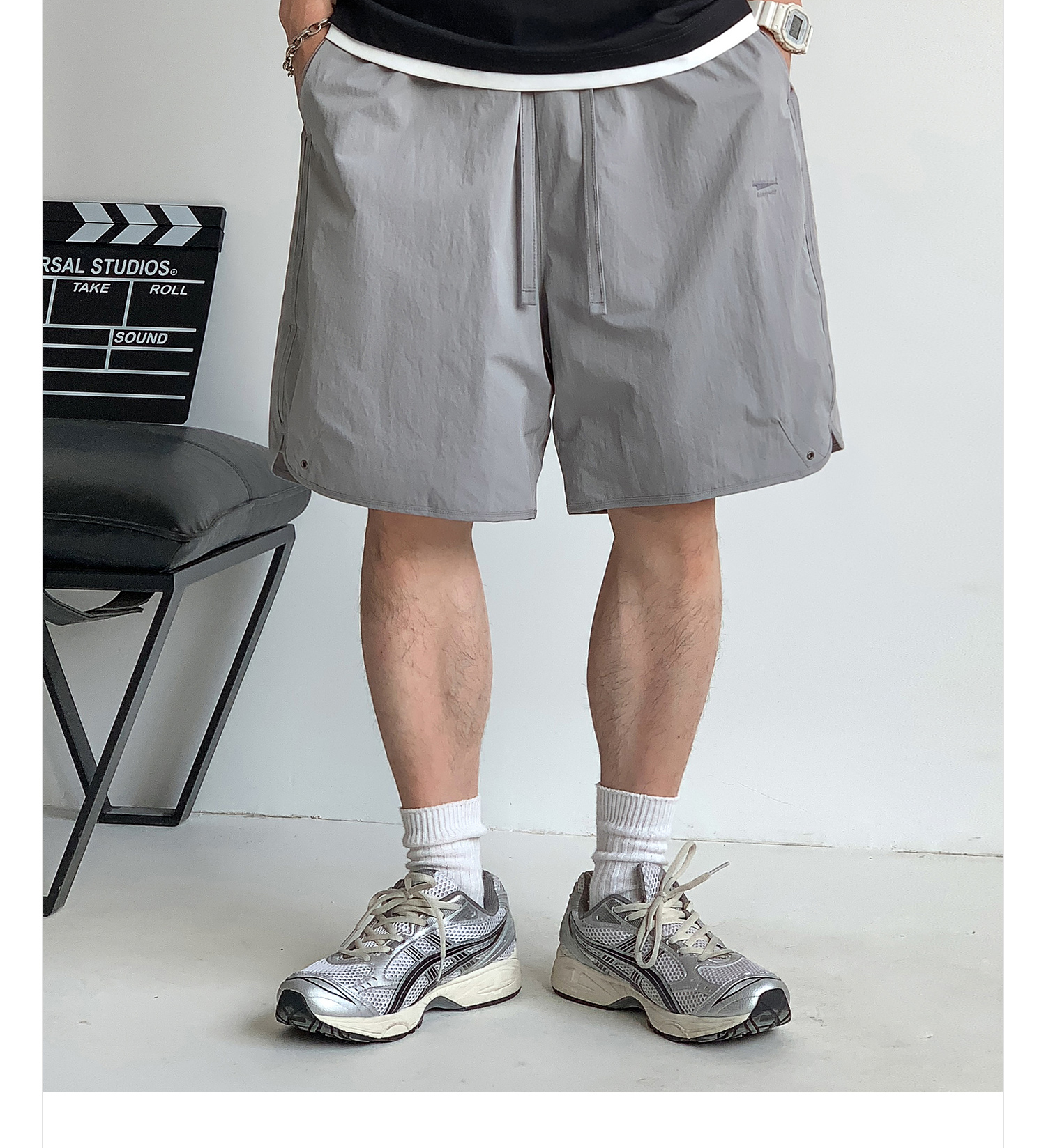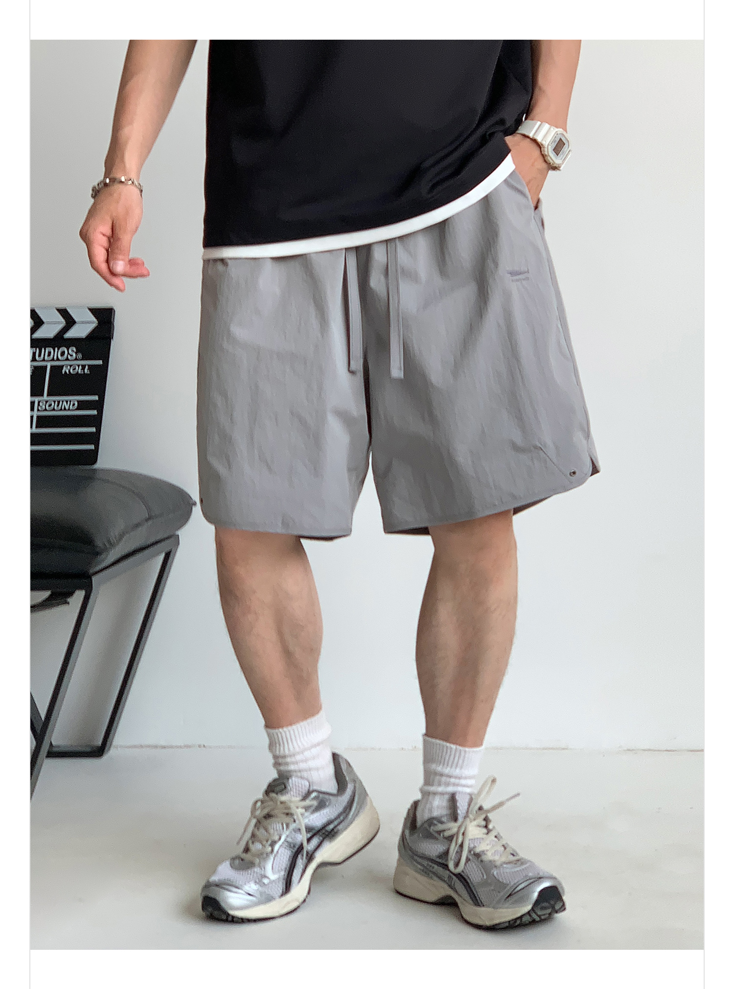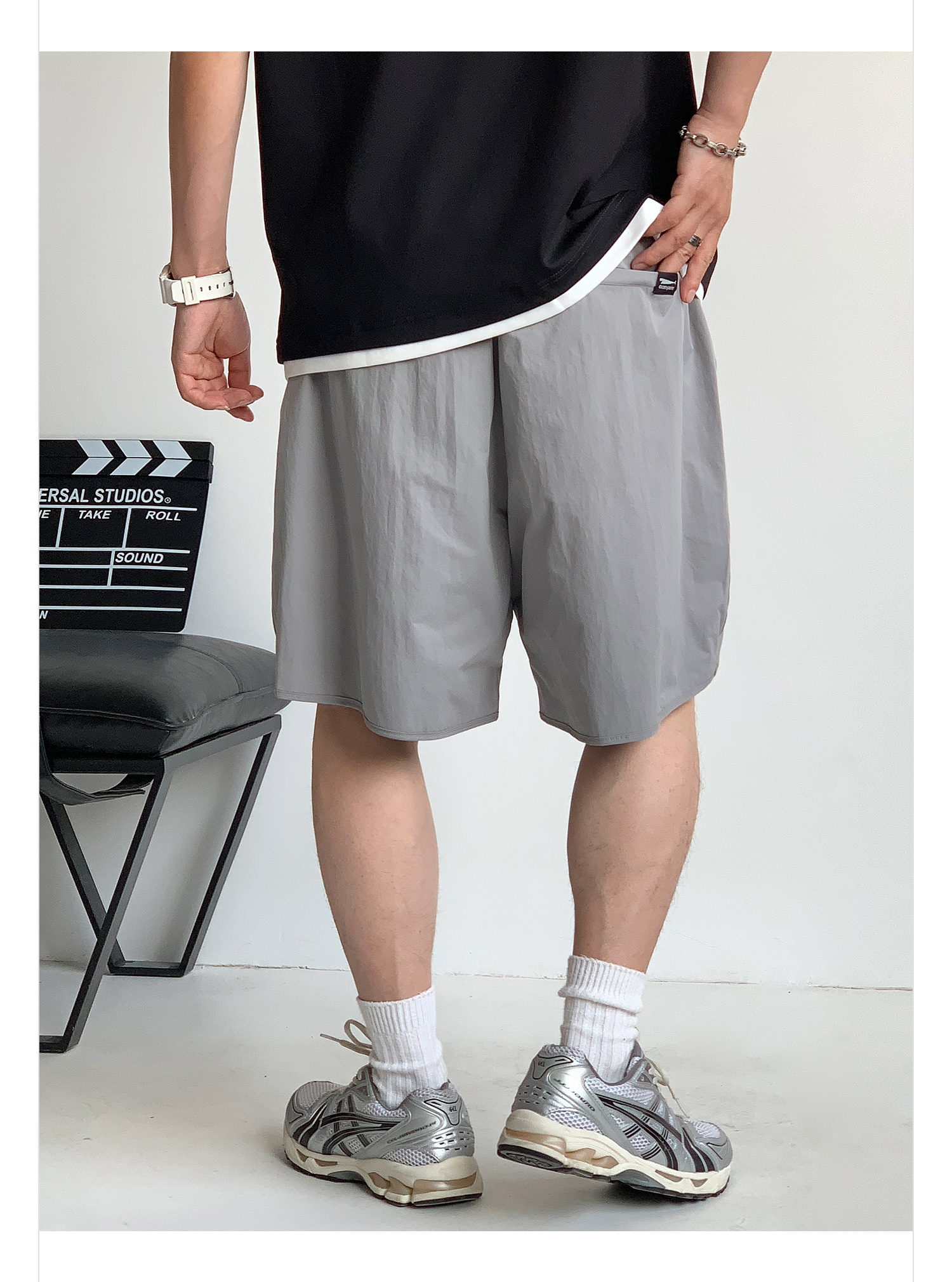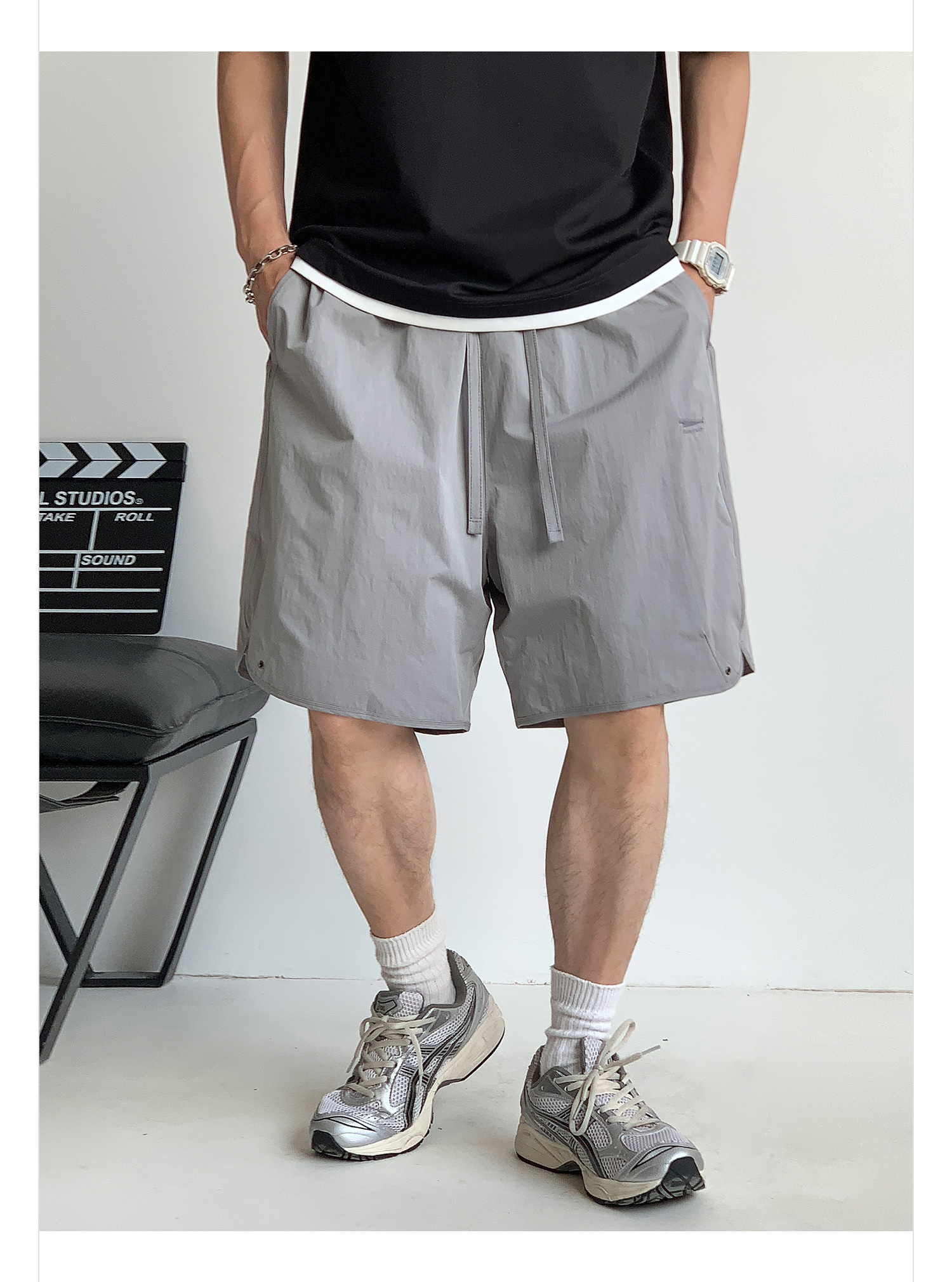 徐太浪纯色简约开衩休闲裤短裤男夏季大码男装宽松直筒五分裤中裤