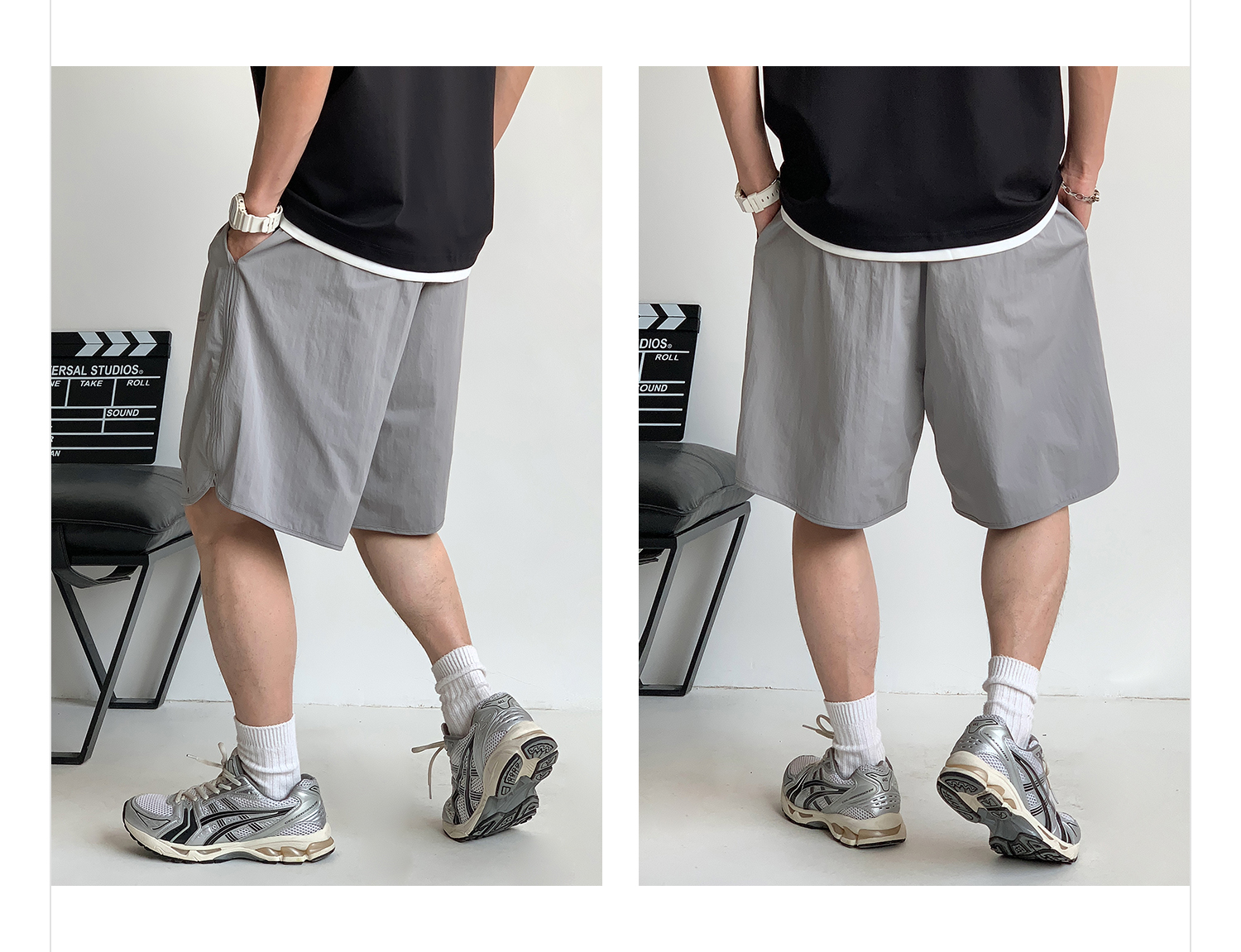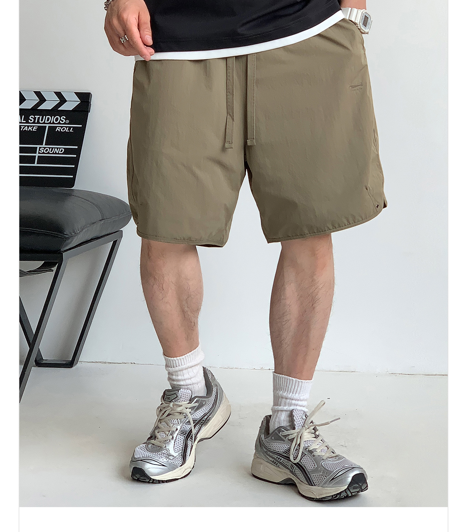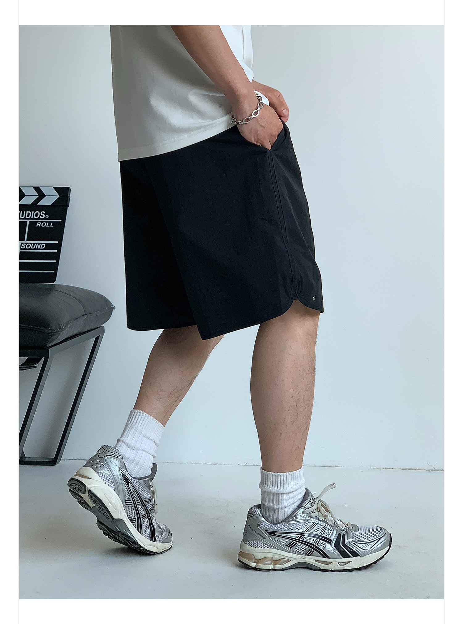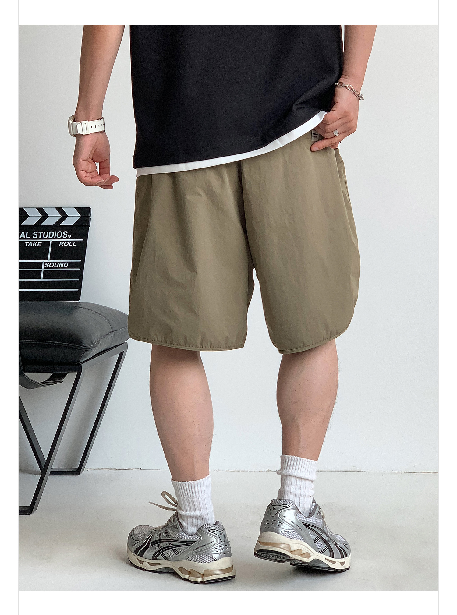 徐太浪纯色简约开衩休闲裤短裤男夏季大码男装宽松直筒五分裤中裤