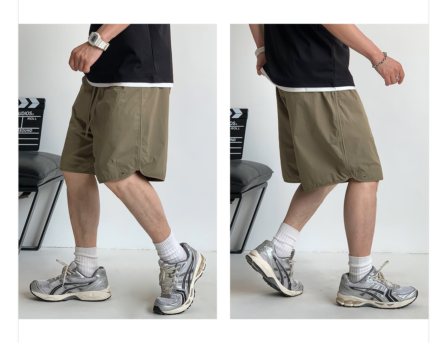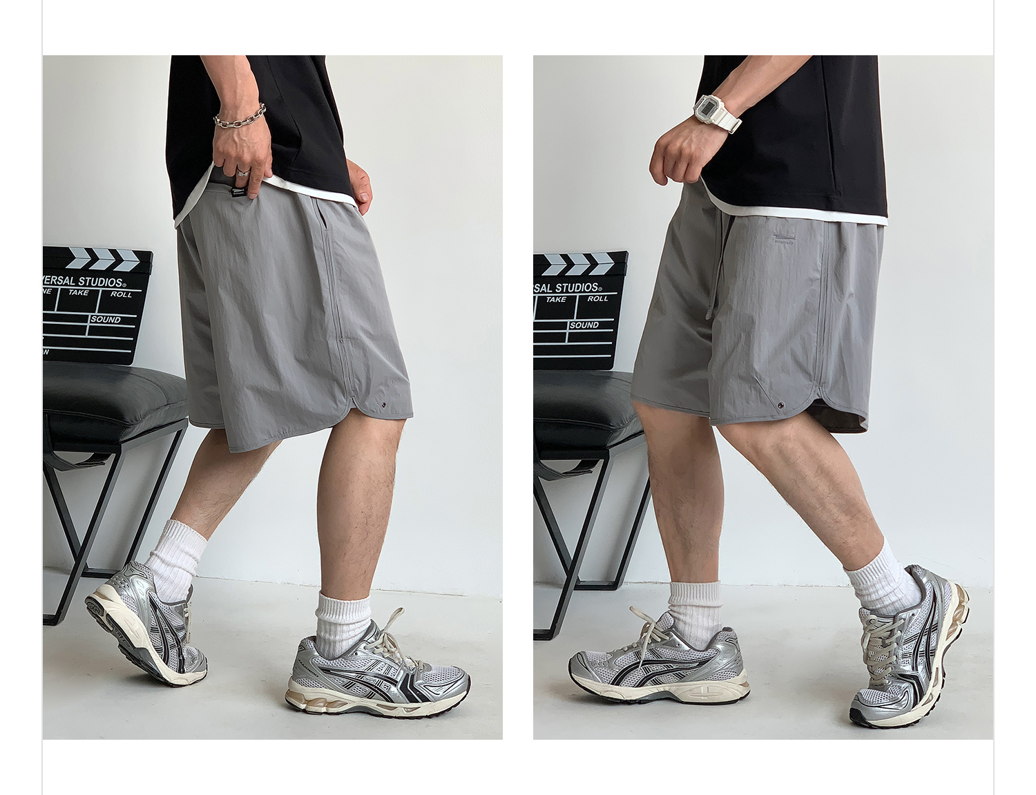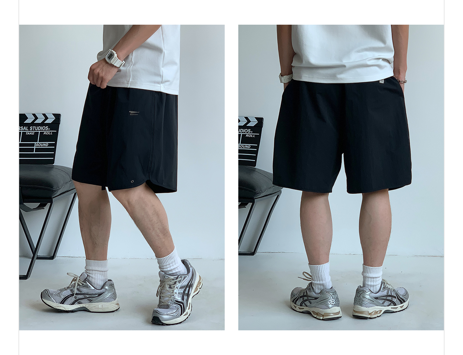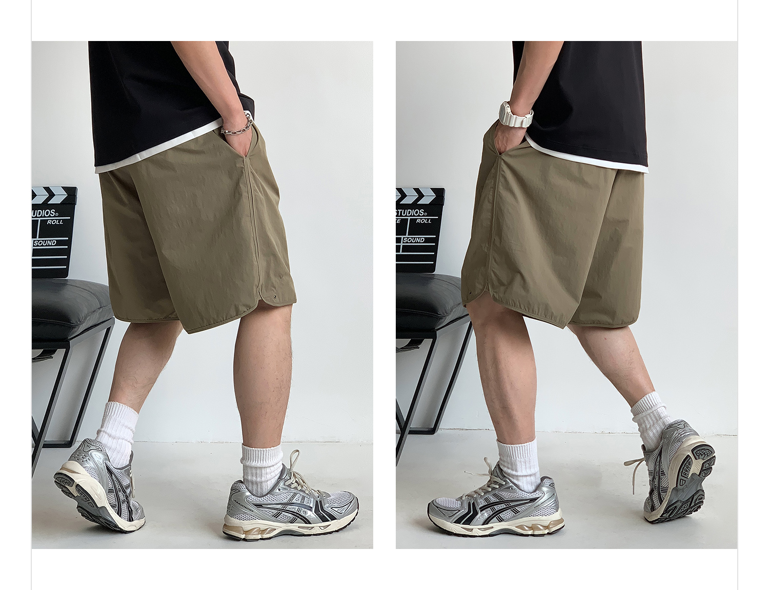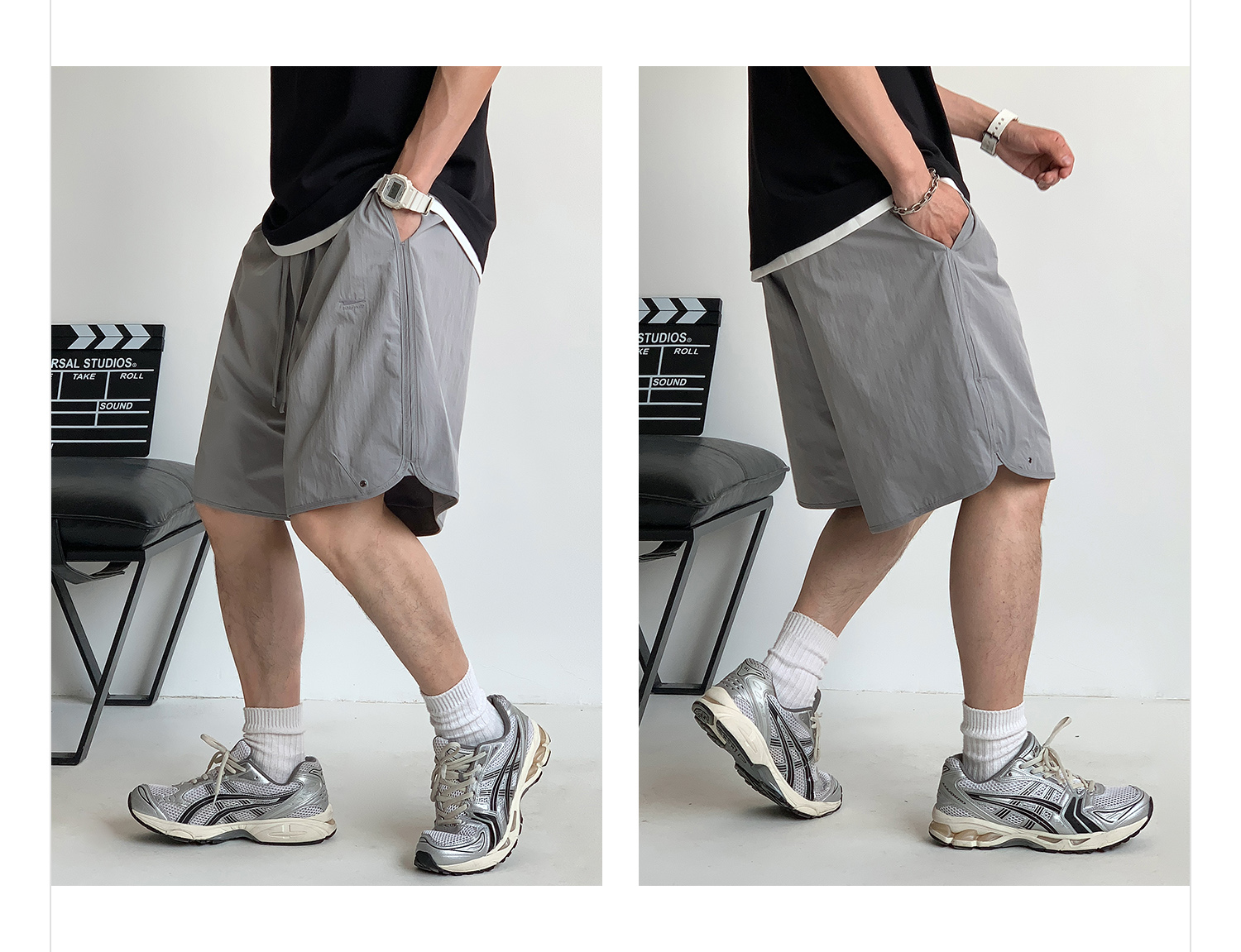 徐太浪纯色简约开衩休闲裤短裤男夏季大码男装宽松直筒五分裤中裤