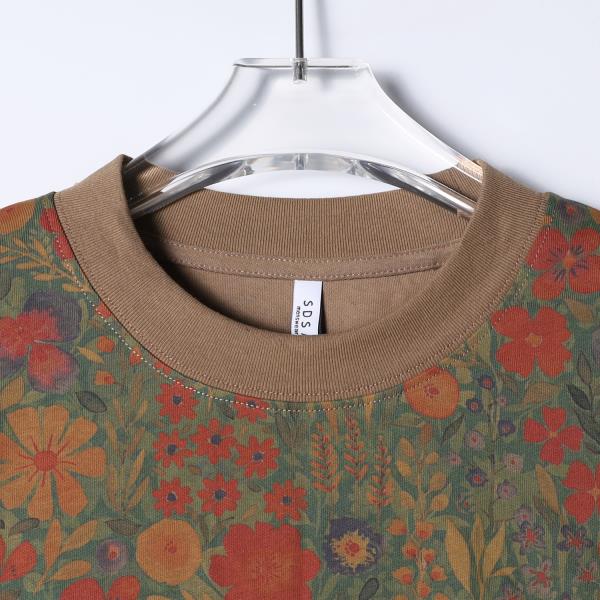 SDSA男装2026新款高贵轻奢个性百搭撞色满印植物花卉圆领短袖T恤