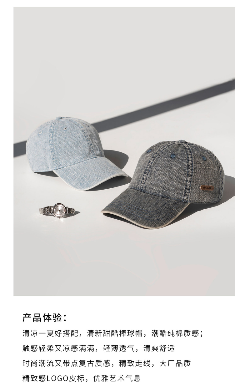 疯帽子 25春夏韩版复古做旧破洞鸭舌帽纯棉透气显脸小棒球帽子女RJ011