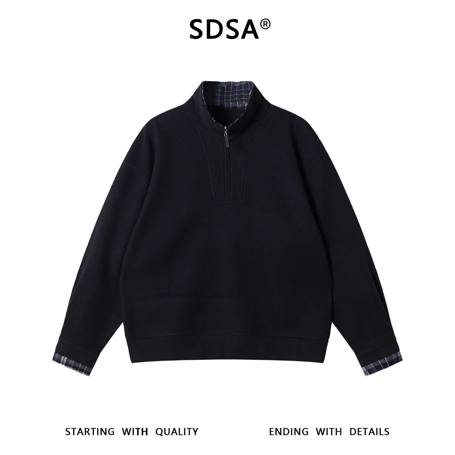 9928SDSA男士秋冬新款痞帅男装潮牌拼接半拉链立领卫衣百搭时尚百搭