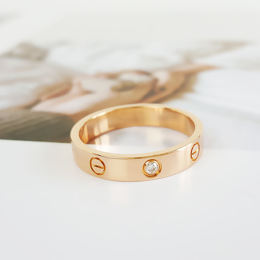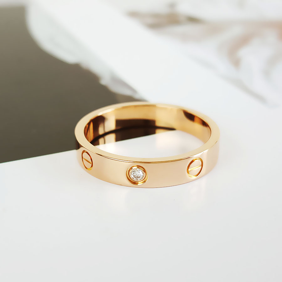 款式 | 18K玫瑰金窄版单钻LOVE戒指 |