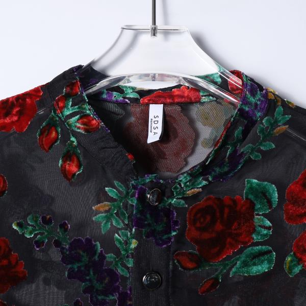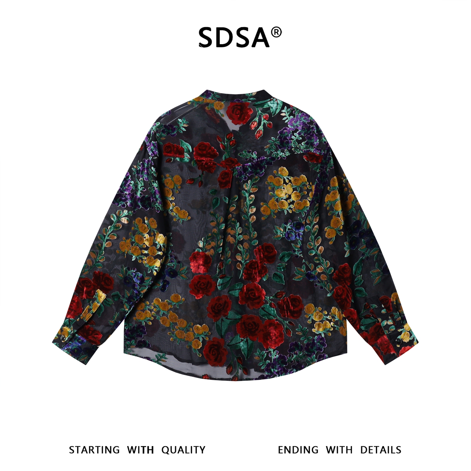 SDSA男装2026新款高贵轻奢植绒玫瑰花卉长袖衬衫宽松立领复古上衣