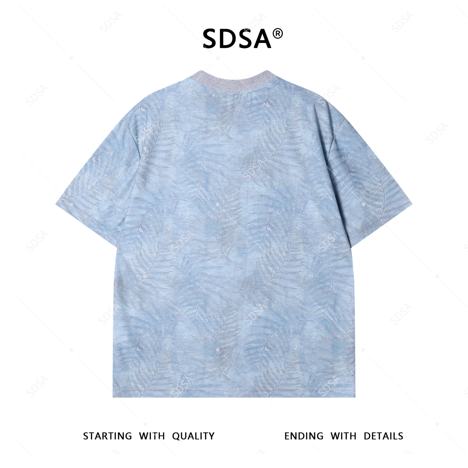 T4111夏季高级感新款男士潮牌扎染叶子图案设计短袖T恤潮流圆领上衣潮