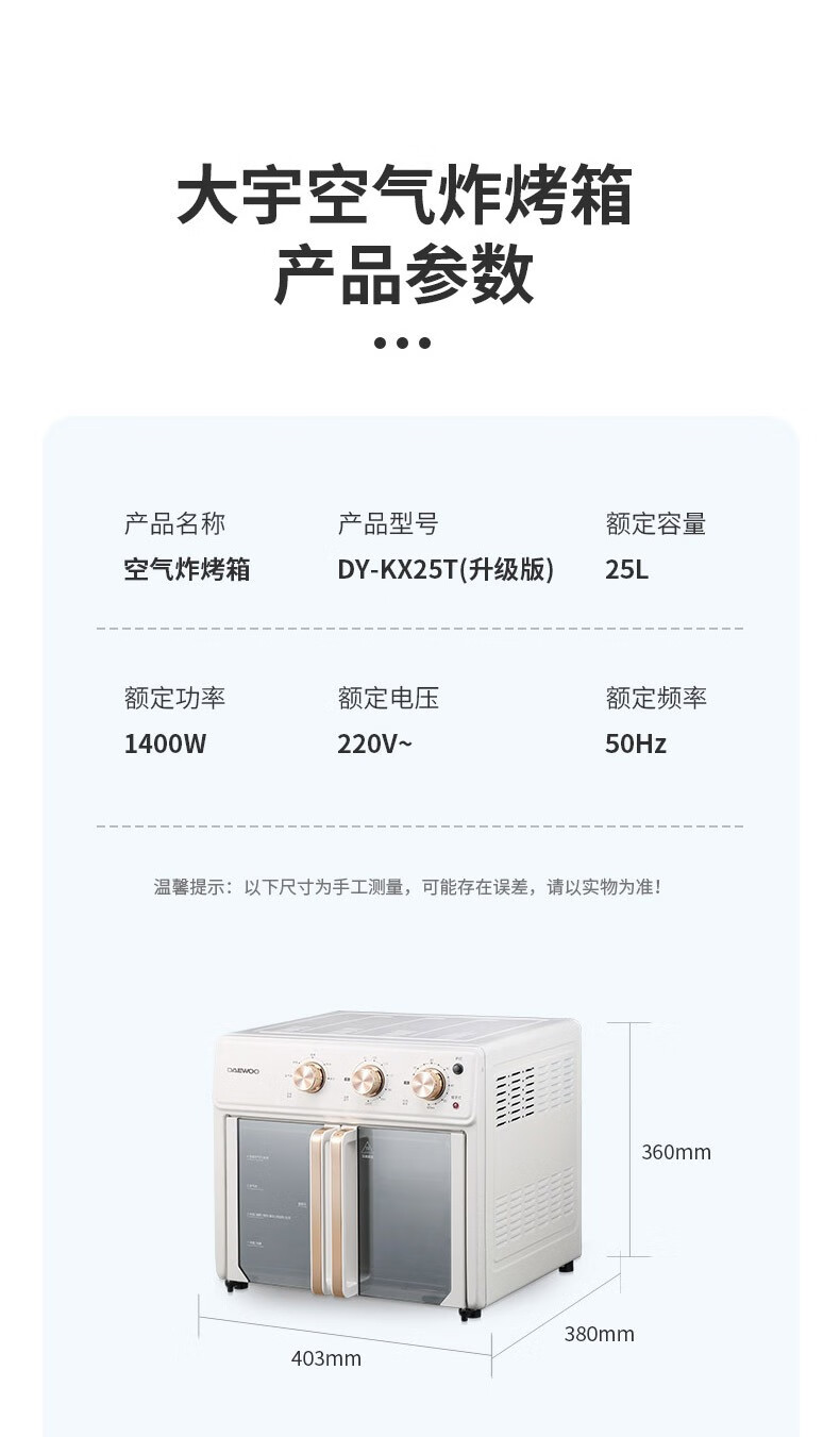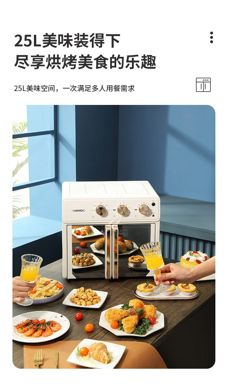 大宇(DAEWOO)电烤箱家用宿舍多功能全自动烘焙机大容量空气炸烤箱DY-KX25T升级版 DY-KX25T