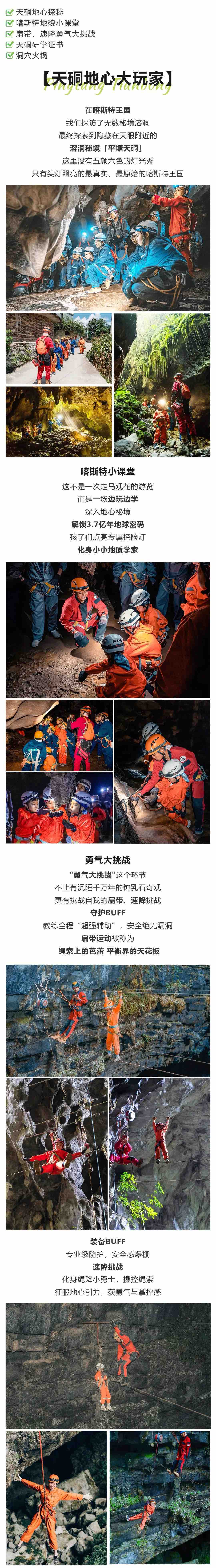 多维体验:化身水质侦探,跟随自然导师探秘原始森林,天硐山体公园,探洞装备体验,洞穴冥想,喀斯特地貌课堂,扁带速降挑战,