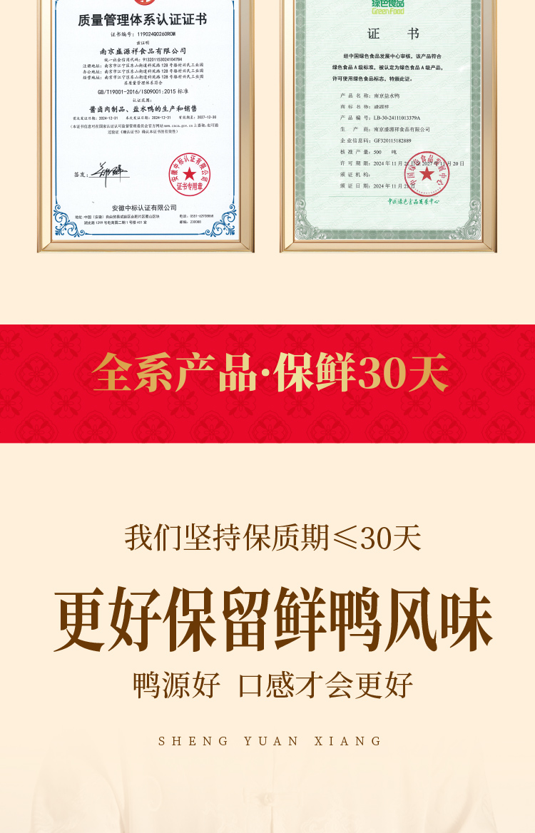 盐水鸭 1kg 特色尝鲜装(30天保质期)