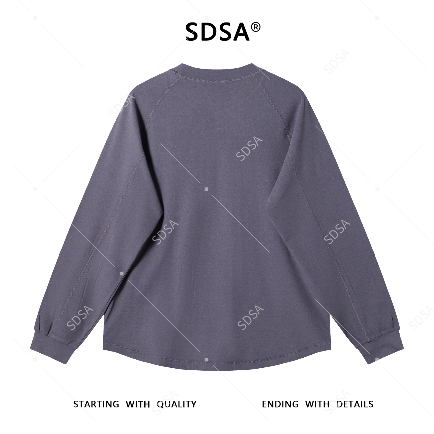 SDSA秋冬新款痞帅男装韩版简约纯色压线圆领长袖T恤百搭舒适上衣