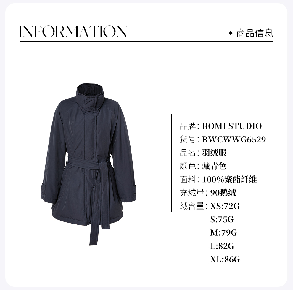 ROMI STUDIO“轻盈自在”90白鹅绒防泼水中长款腰带羽绒RWCWWG6529