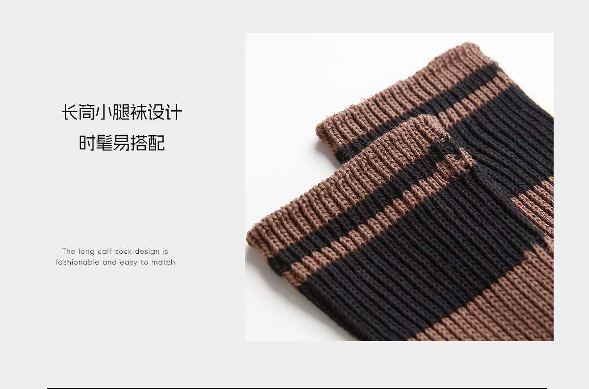 ROMI STUDIO“复古休闲”棉质软糯条纹撞色长筒小腿袜 RWCAP35370