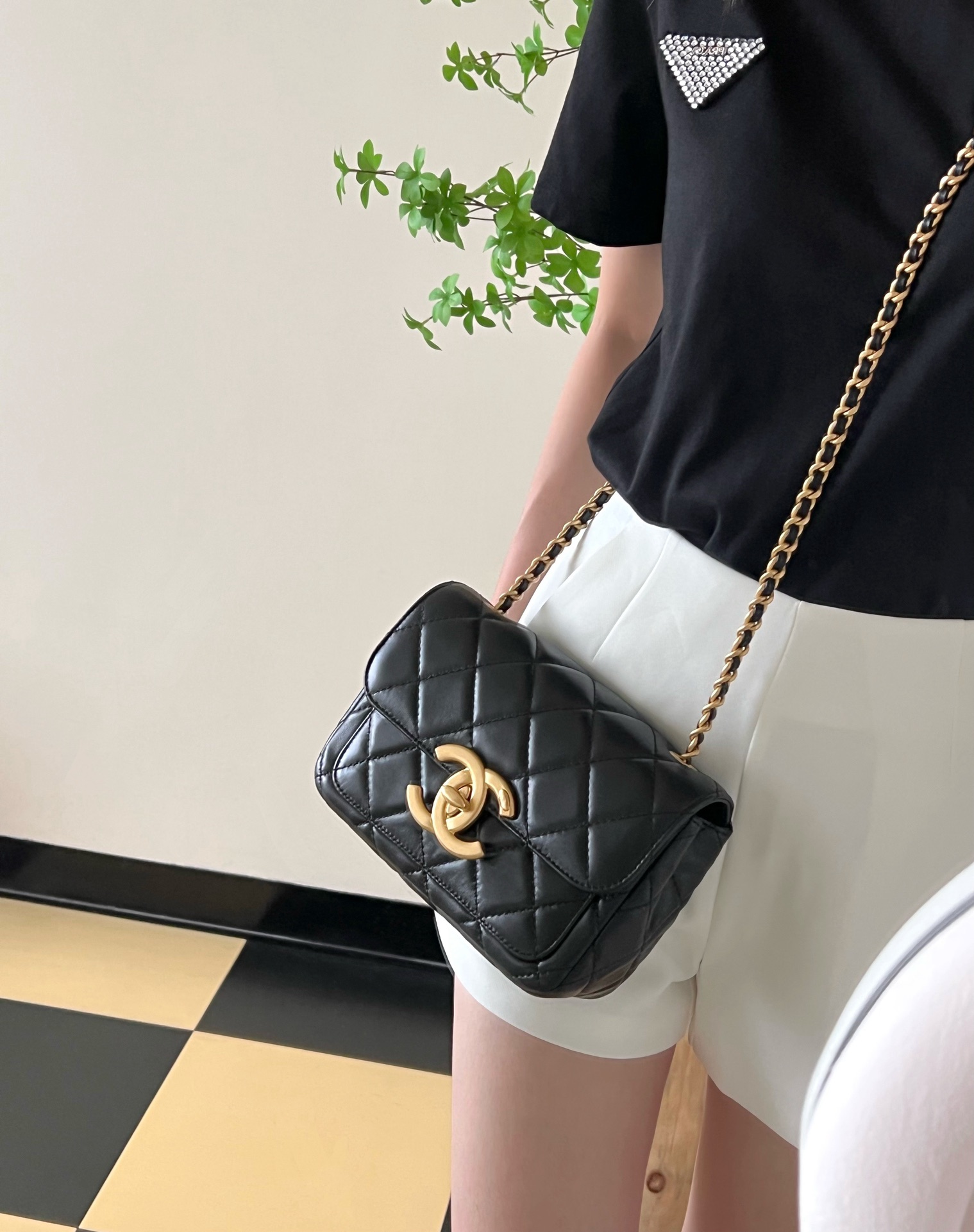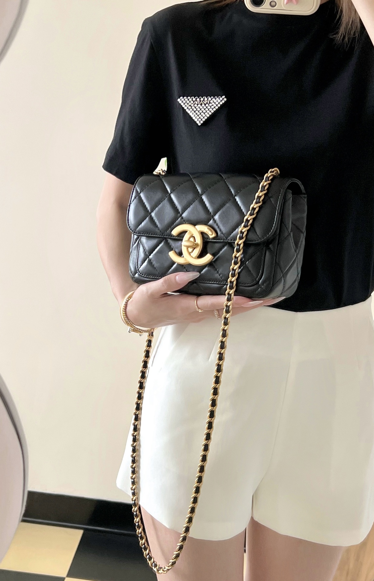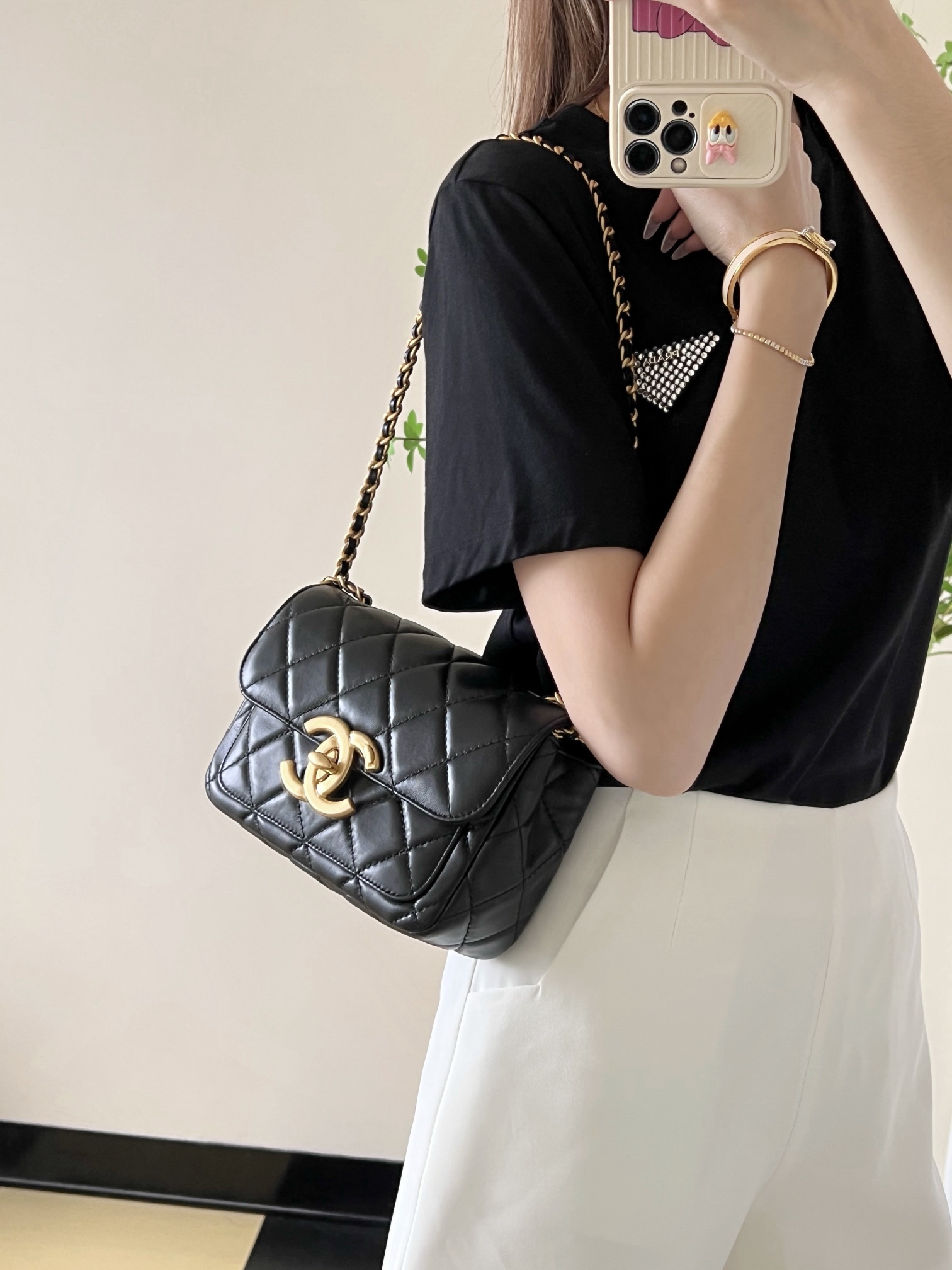 全新到货🆕𝗖𝗵𝗮𝗻𝗲𝟭 𝟮𝟰𝗕秋冬 大𝗅𝗈𝗀𝗈口盖包 黑色 专柜售价𝟦𝟥𝟤𝟢𝟢𝗋𝗆𝖻购入开发~ 复古轮回大𝗅𝗈𝗀𝗈口盖是𝖢𝗁𝖺𝗇𝖾𝟣标志性语言, 每一次触碰都仿佛在诉说着品牌的故事~ 简约而不简单的设计,让人一眼难忘 五金:厚镀𝟤𝟦𝗄复古金扣 皮料:𝖦𝖺𝗂𝖾𝗋𝖺真品小羊皮 尺寸: 𝟣𝟥.𝟧*𝟣𝟫*𝟩 𝖼𝗆