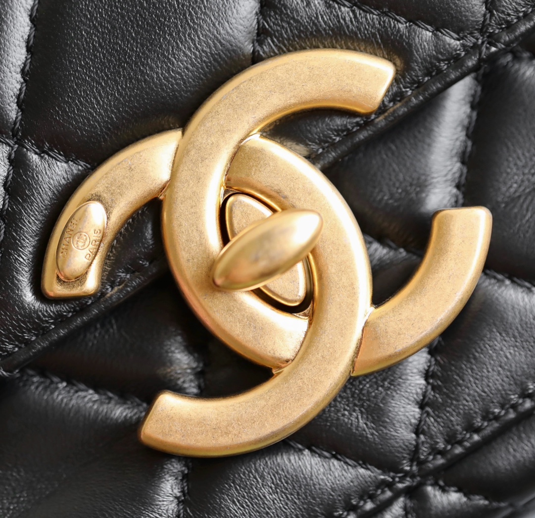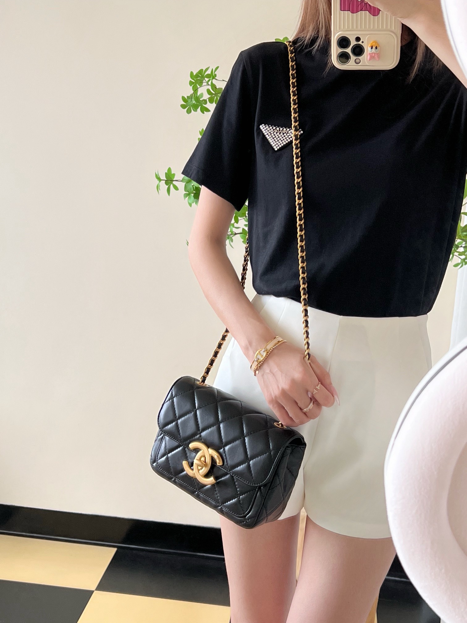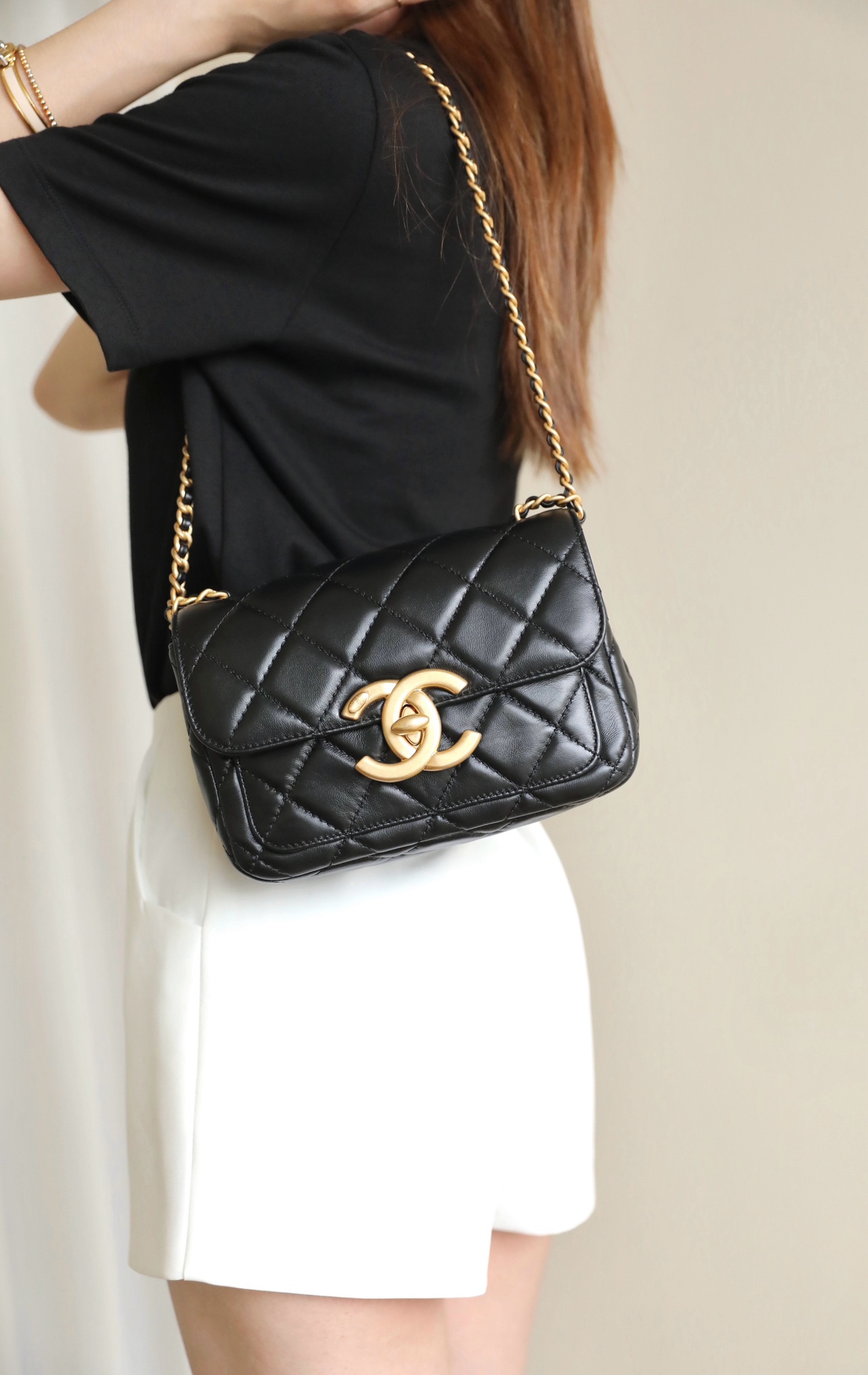 全新到货🆕𝗖𝗵𝗮𝗻𝗲𝟭 𝟮𝟰𝗕秋冬 大𝗅𝗈𝗀𝗈口盖包 黑色 专柜售价𝟦𝟥𝟤𝟢𝟢𝗋𝗆𝖻购入开发~ 复古轮回大𝗅𝗈𝗀𝗈口盖是𝖢𝗁𝖺𝗇𝖾𝟣标志性语言, 每一次触碰都仿佛在诉说着品牌的故事~ 简约而不简单的设计,让人一眼难忘 五金:厚镀𝟤𝟦𝗄复古金扣 皮料:𝖦𝖺𝗂𝖾𝗋𝖺真品小羊皮 尺寸: 𝟣𝟥.𝟧*𝟣𝟫*𝟩 𝖼𝗆